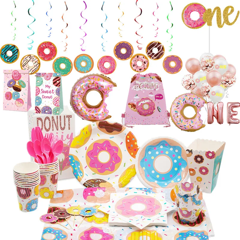 OEING пончик одноразовый набор посуды пончик 1 день рождения одноразовая скатерть пончик для выращивания торта Топпер/воздушные шары детский душ Gir