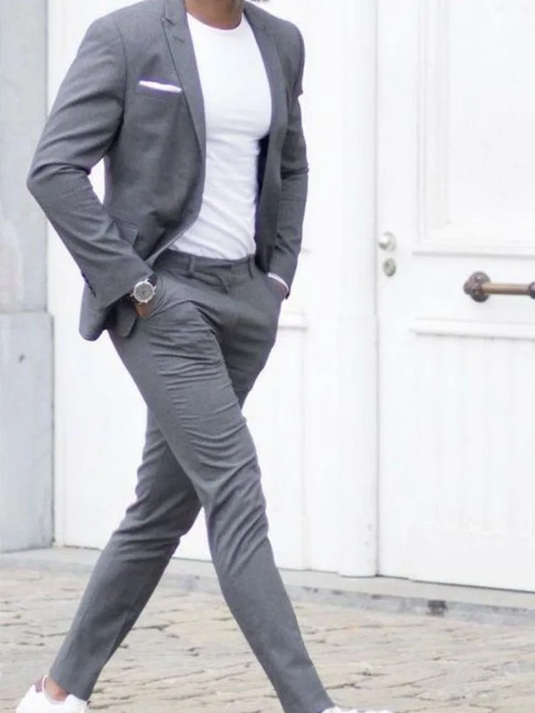 ANNIEBRITNEY Grey 2 Piece Slim Fit Fit Men Formal Suit
