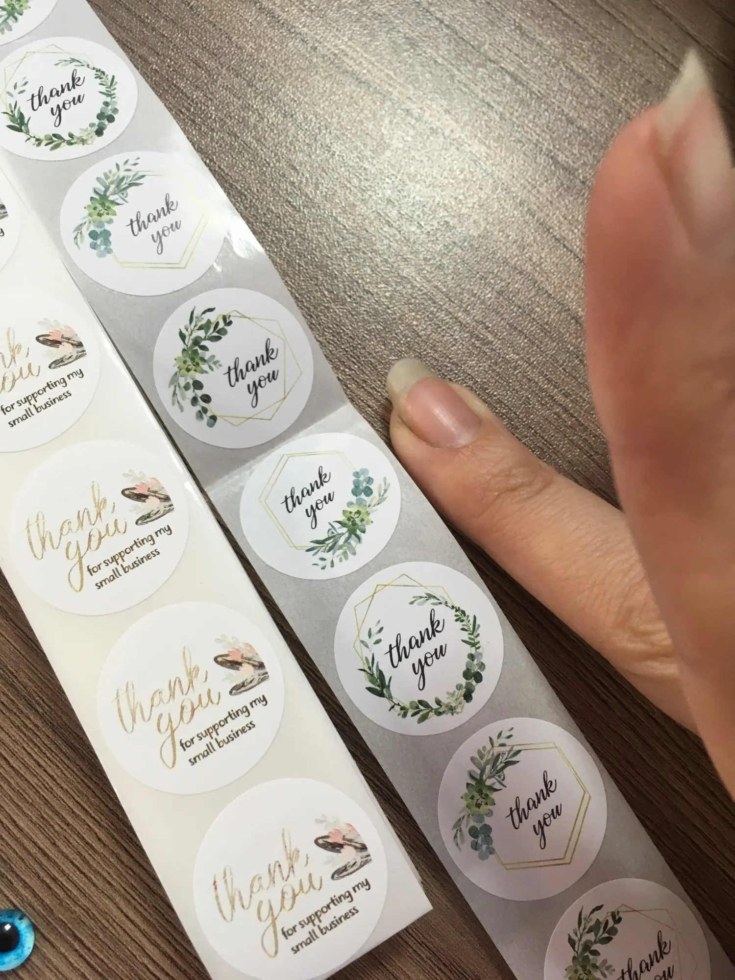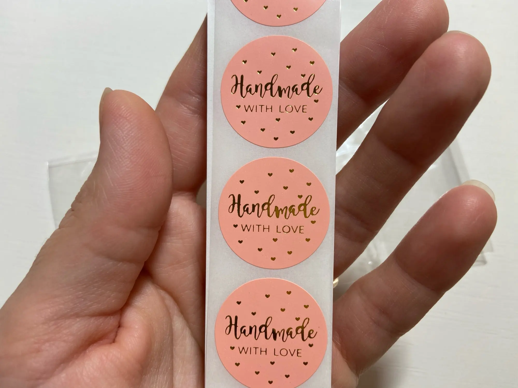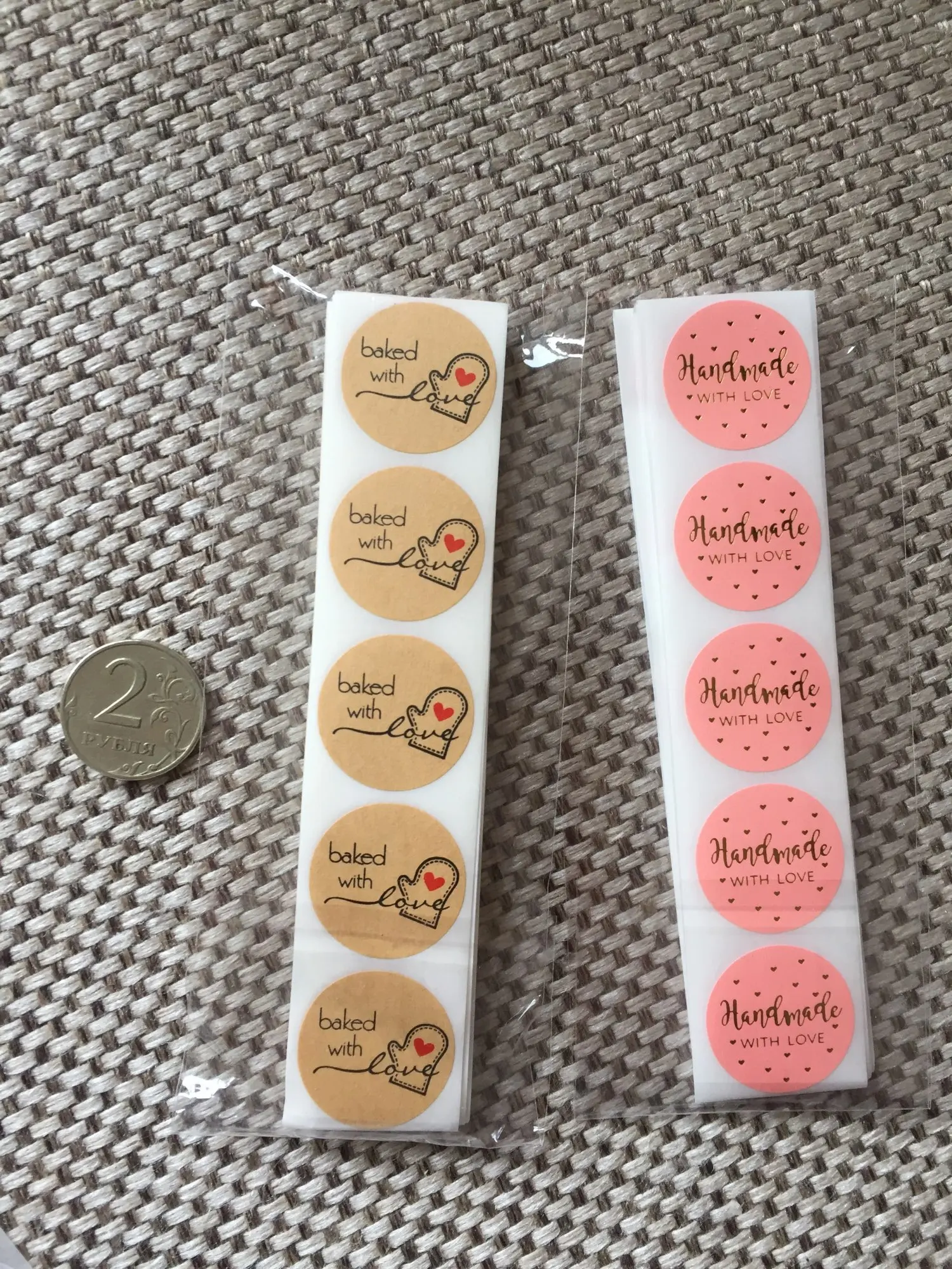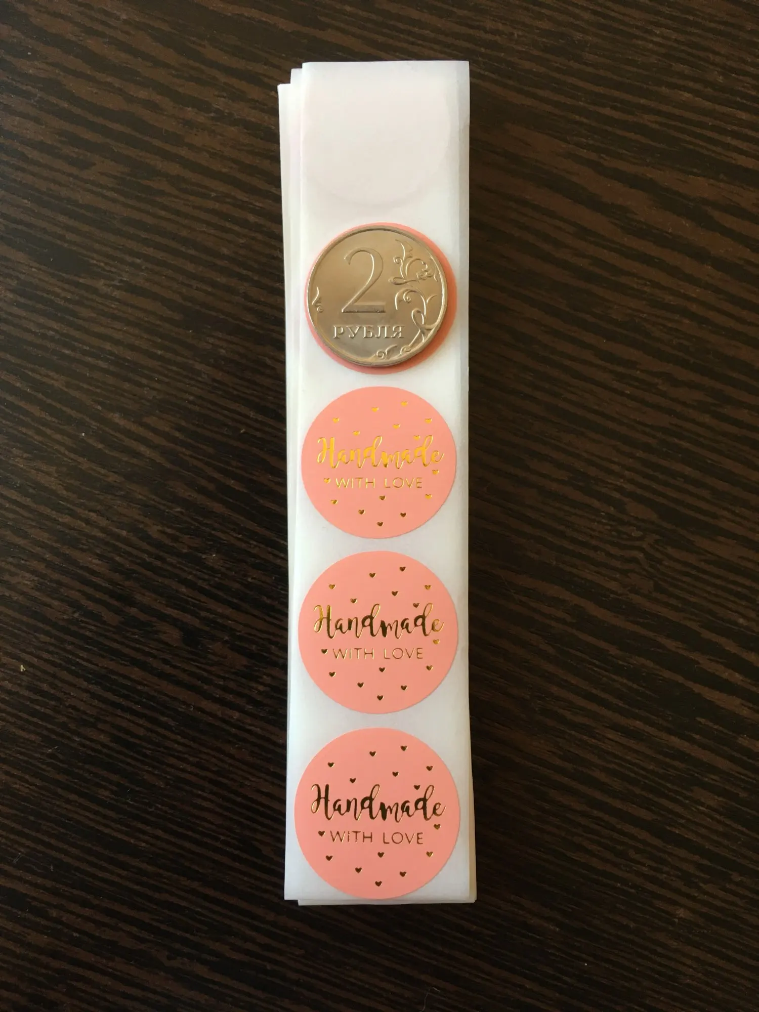 Описание не сильно соответствует,думала будут в рулоне, но впрочем без разницы,в бонус пришли ещё 10 наклеек:),заказывала 100,пришли ровно 100,очень качественно,но не такие большие как думала,вообщем мне нравится!:)