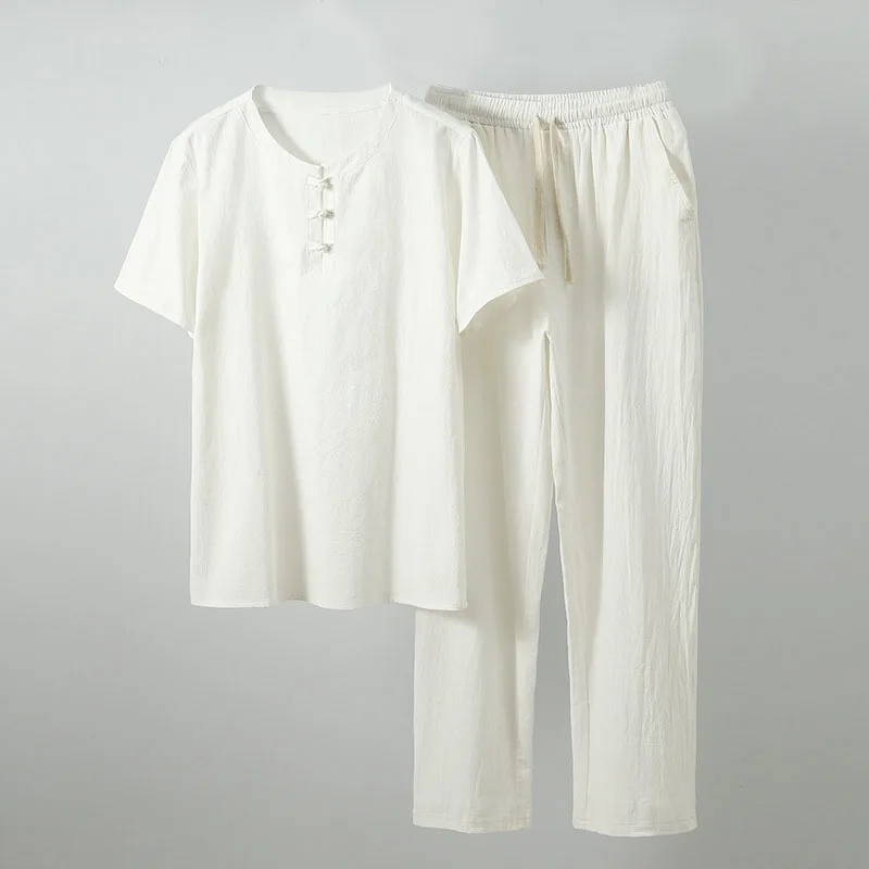 Футболка и брюки мужские льняные в китайском стиле, костюм Тан с короткими рукавами, размера плюс 5XL 7XL 8XL 9XL, винтажная, в стиле оверсайз, на лето