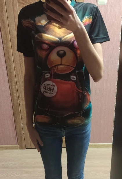 Долго не отправляли, связался с продавцом, он извинился так как попал на праздники! Через полтора месяца получил заказ, футболка шикарная, заказал XXXL, но с моим 175 ростом и 90 кг подошло бы и XXL! Брать советую, рисунок отличный!