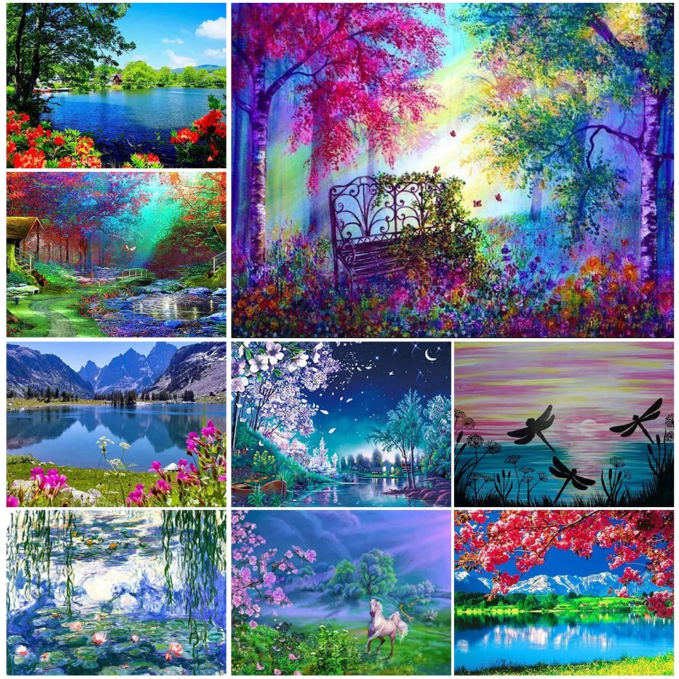 Алмазная 5D живопись сделай сам, пейзаж, дерево, озеро, вышивка крестиком, алмазная вышивка, мозаика, узор, стразы, Декор, домашний подарок