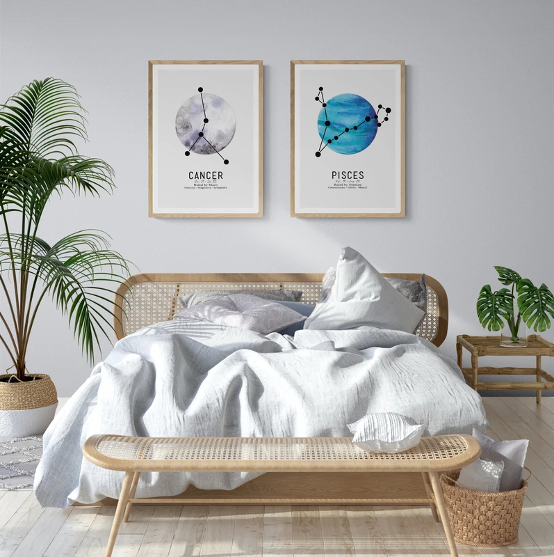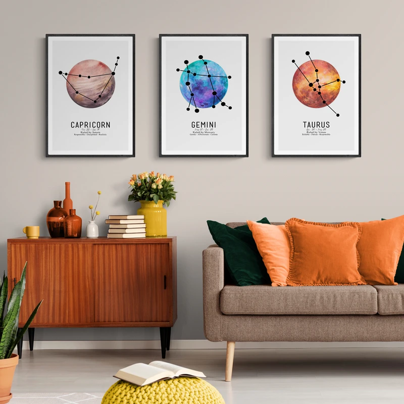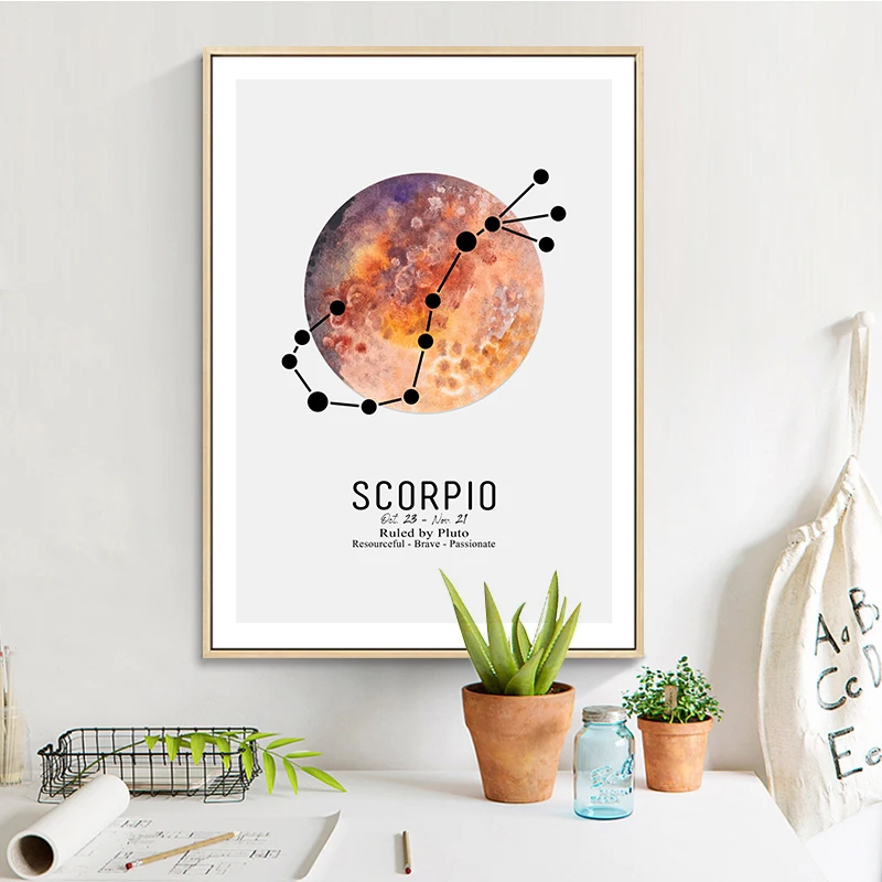 декор для дома постеры на стену картина на стену постер декор комнаты картина декор Настенная живопись, холст с 12 знаками Зодиака, Созвездие и планеты, картины для дома, дизайнерские плакаты и принты для гостиной