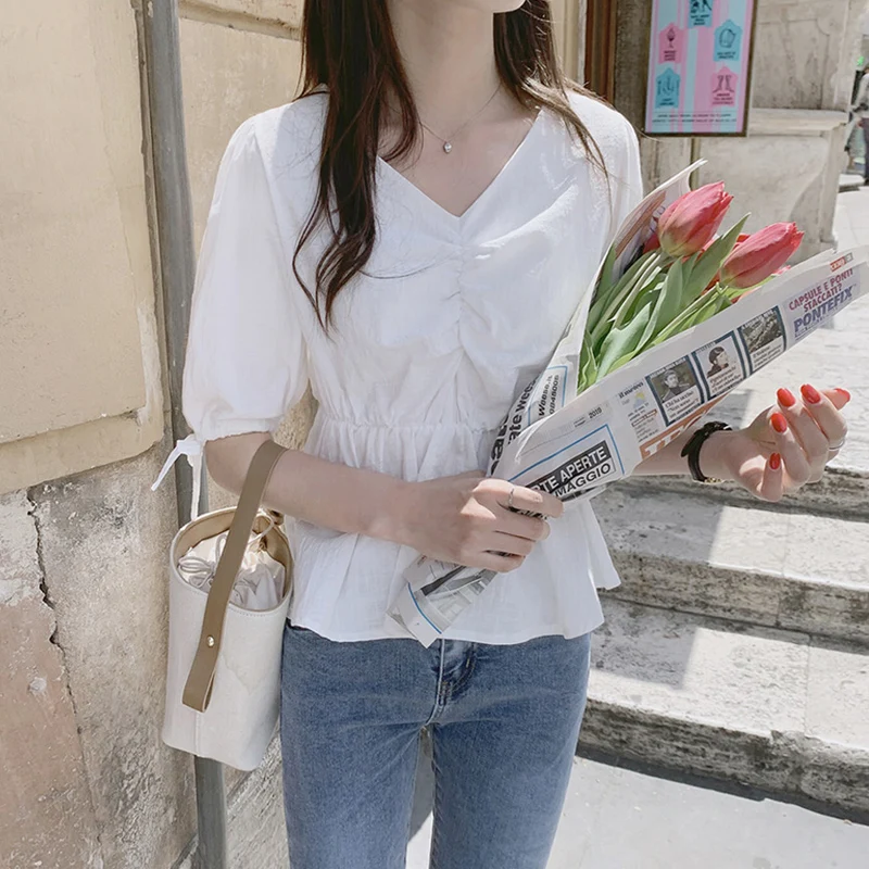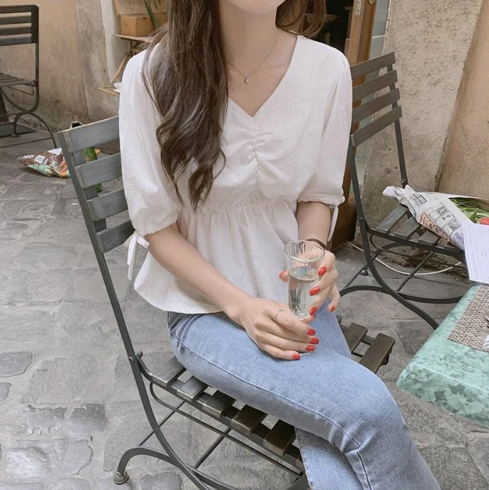 Новинка, женские блузки, летние женские топы, повседневная женская рубашка, белая, с коротким рукавом, хлопковая, для девочек, женская блузка, большие размеры, блузы, однотонные, свободные