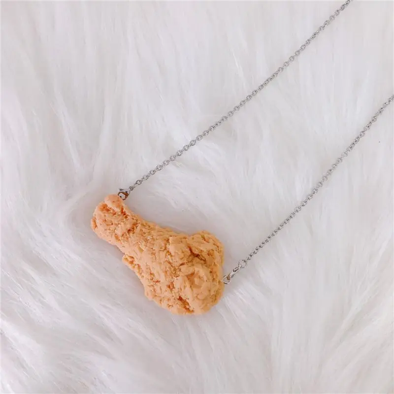 Ожерелье с подвеской в виде жареной курицы, очаровательное забавное хрустящее куриное крыло, ожерелье с реалистичной едой, модные украшения