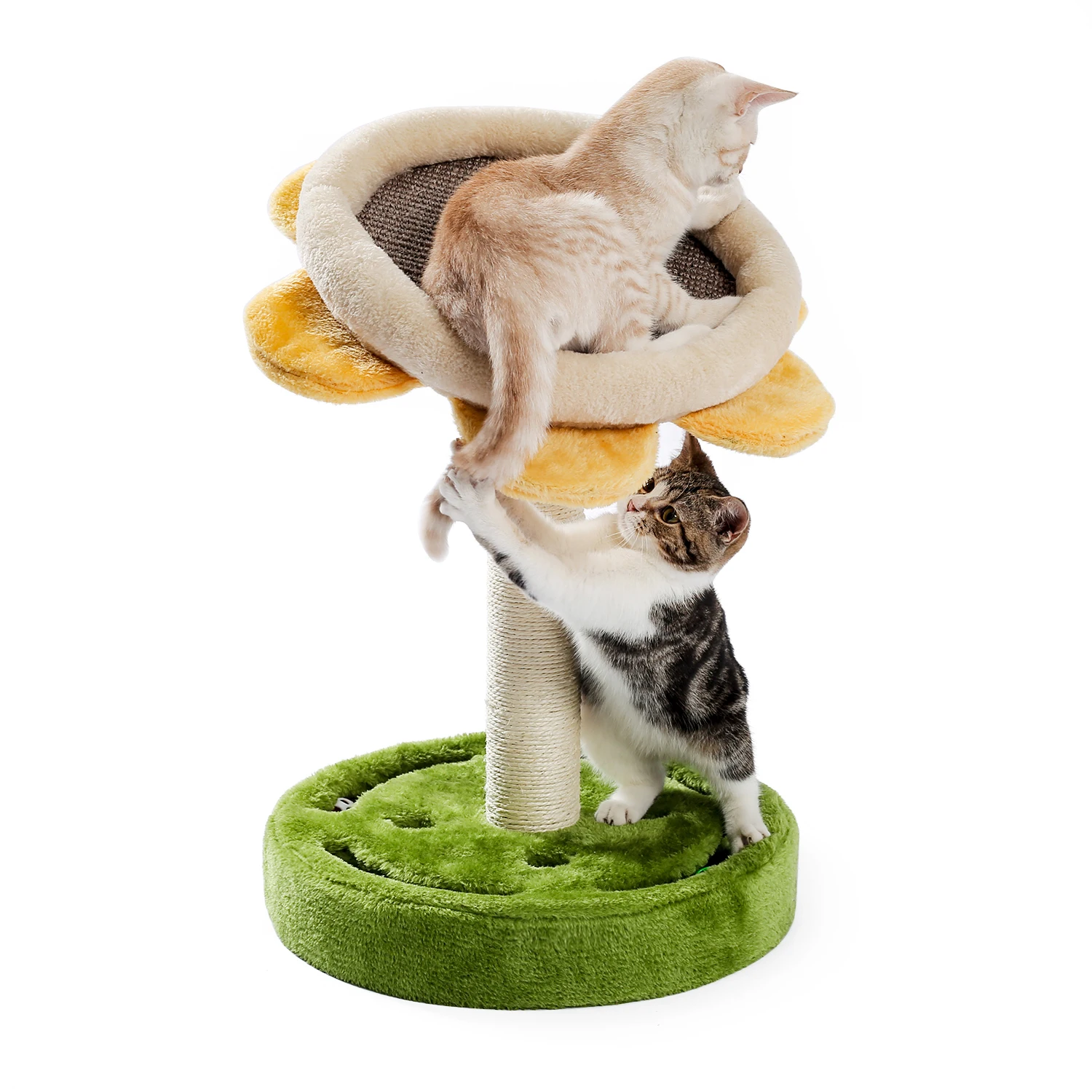 Быстрое дерево для кошек с покрытой сизалем когтеточкой, плюшевый домик для кошек, гамак, насадки, платформа, свисающий шарик для кошек, котят