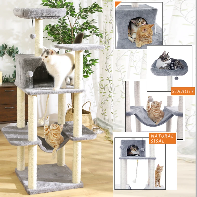 Быстрая доставка, кошачье дерево с сизалем, Когтеточка, плюшевый домик для кошек, гамак, окунь, платформа, подвесной мяч для кошек, котят