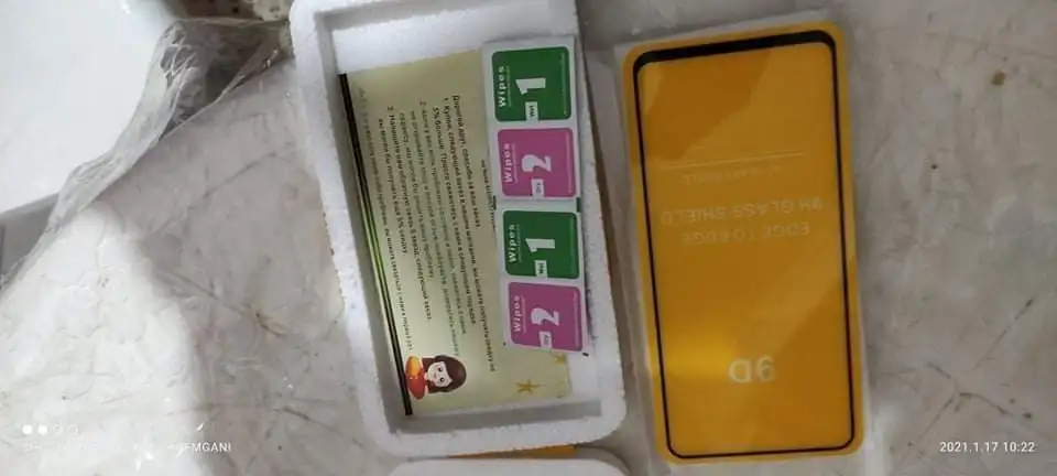 Заказ занимает около 20 дней, очень хорошо упаковывается, чтобы избежать поломки. Я надел его на свой телефон без особых сложностей, хорошо чистил его с помощью влажных салфеток, он идеально сидит, не создает пузырьков и не скрывает ничего от экрана. Протектор камеры из пластика не стекла, но все еще очень полезен. Я рекомендую покупку