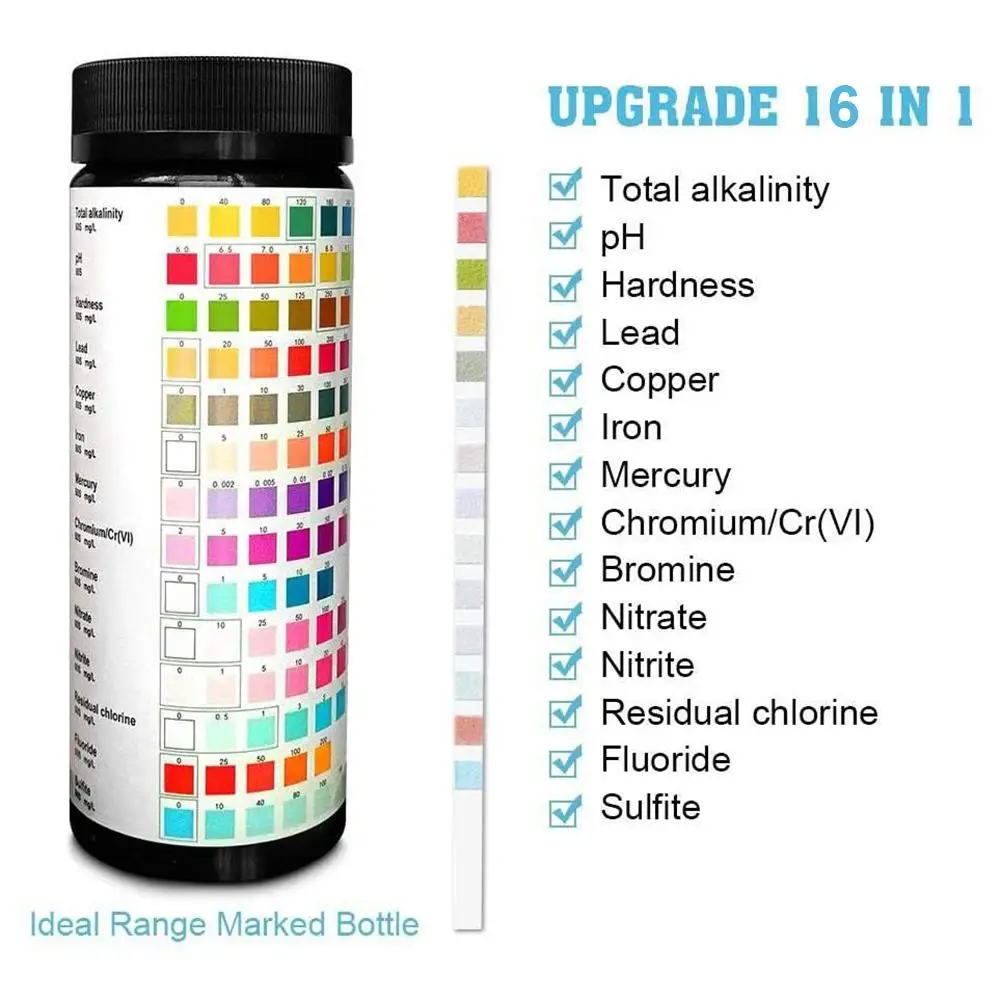 16 в 1 тест-полоски для бассейнов, тест-полоски для бассейнов, тест-полоски для воды, тест-полоски для питьевой воды, бумага для водоема, аквариума