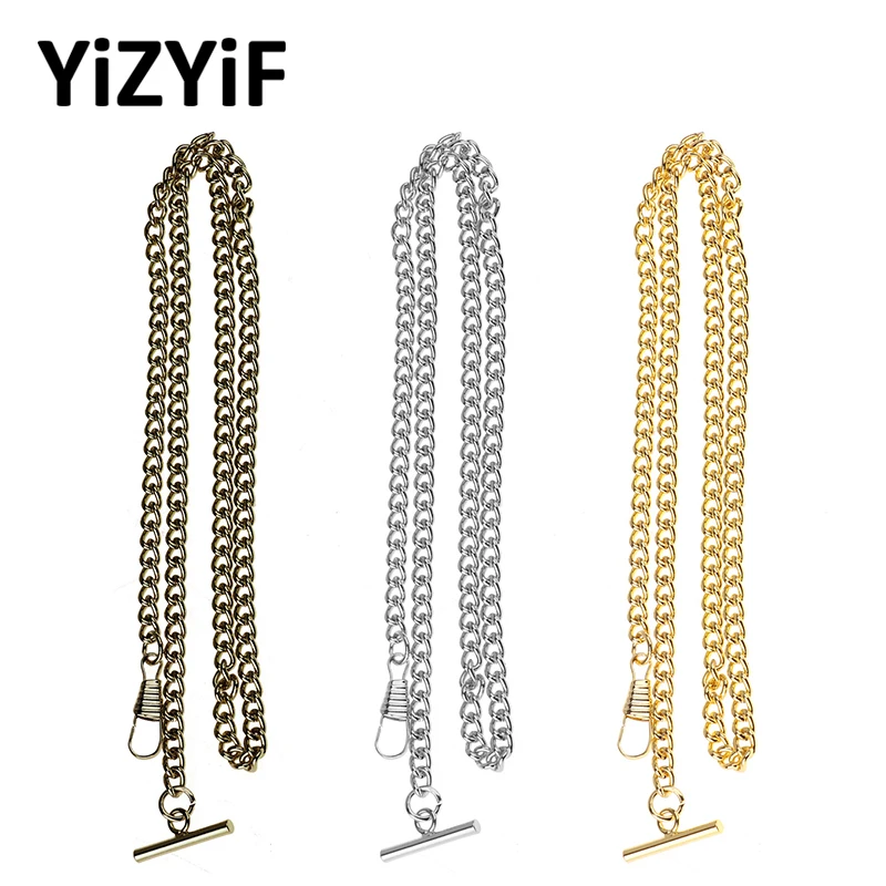 Винтажный Стиль хромированный жилет карманные часы звено цепи с Т-бар и омаров пряжки часов аксессуары для костюма