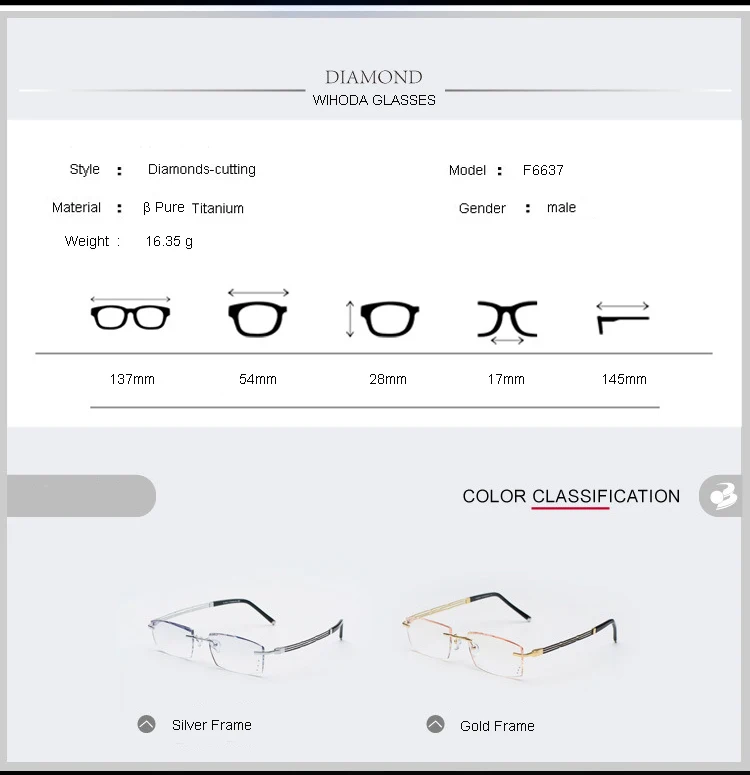 Оправа безободковая WIHODA из титанового сплава для мужчин и женщин...