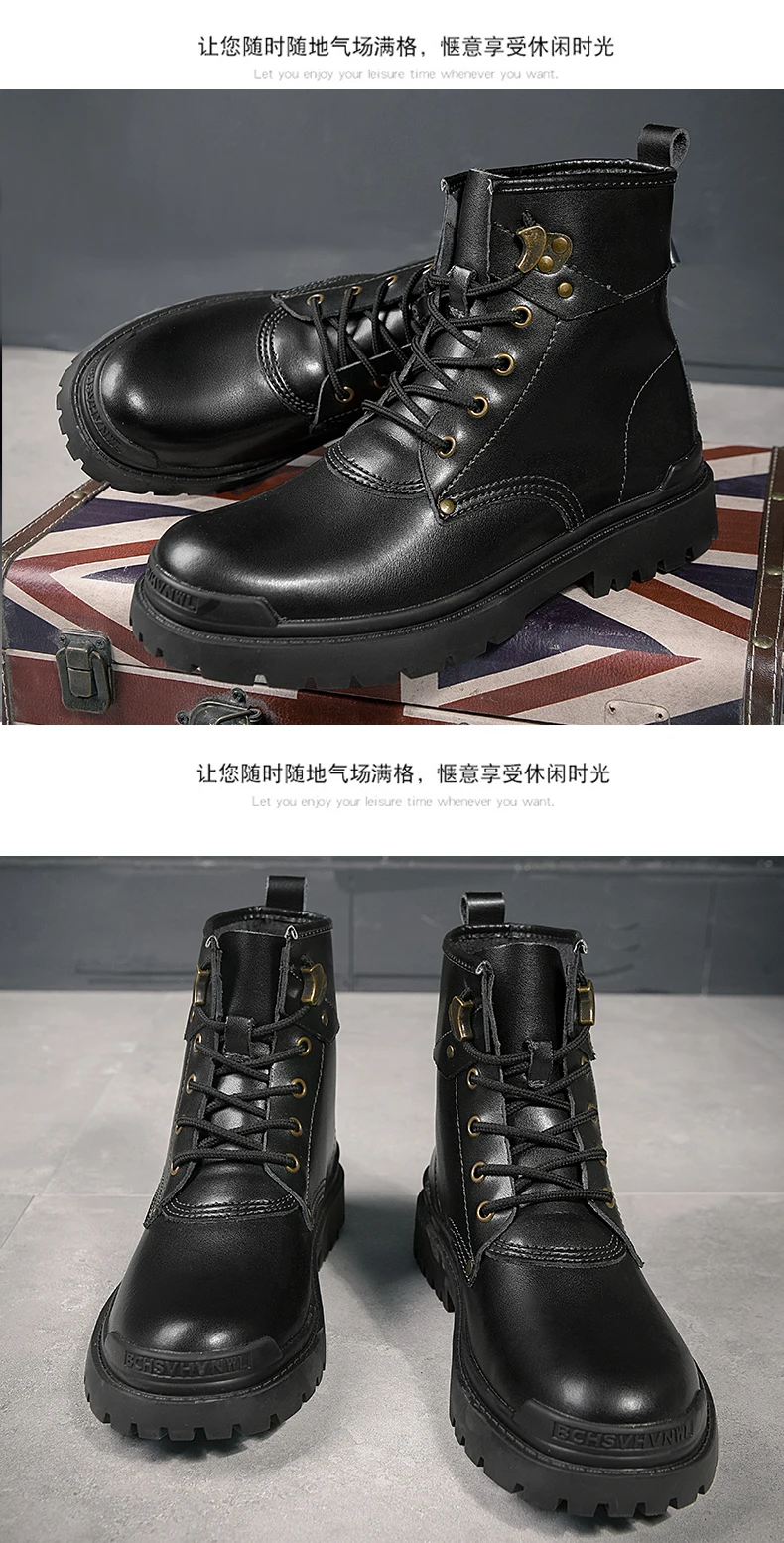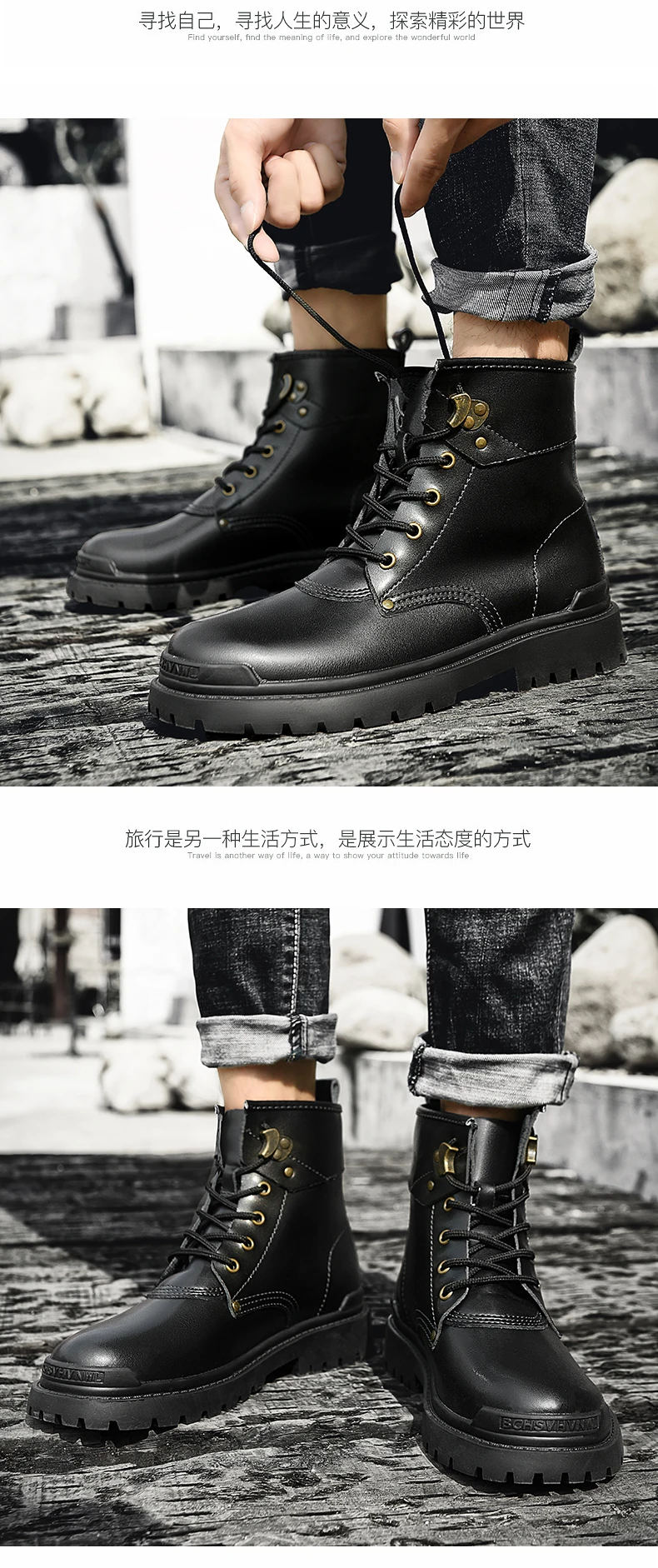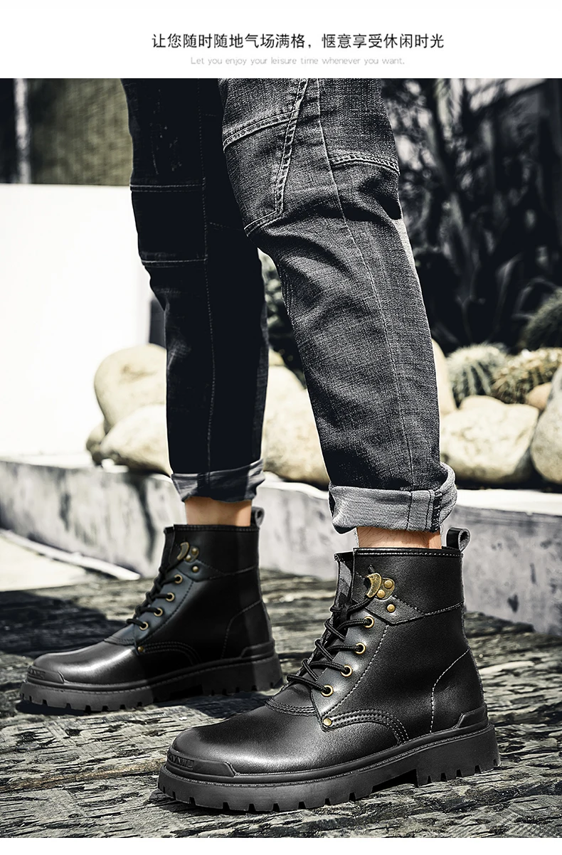Мужские зимние ботинки для мужчин, водонепроницаемые кожаные кроссо...
