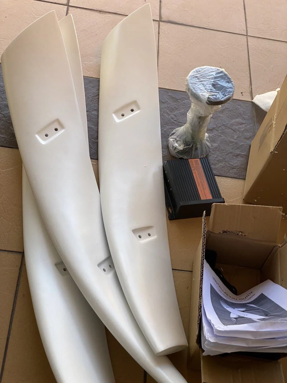 ① 3 лезвия, 1 комплект генератора и 1 Комплект болтов и гаек.② Главный вал 1 шт. и дужки③ MPPT контроллер 1 шт. (опционально)④ Инвертор (опционально)