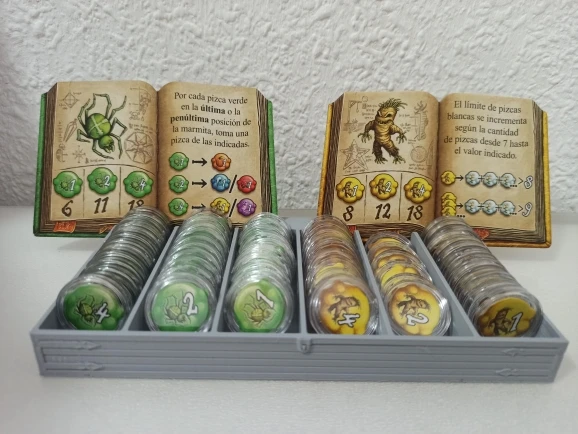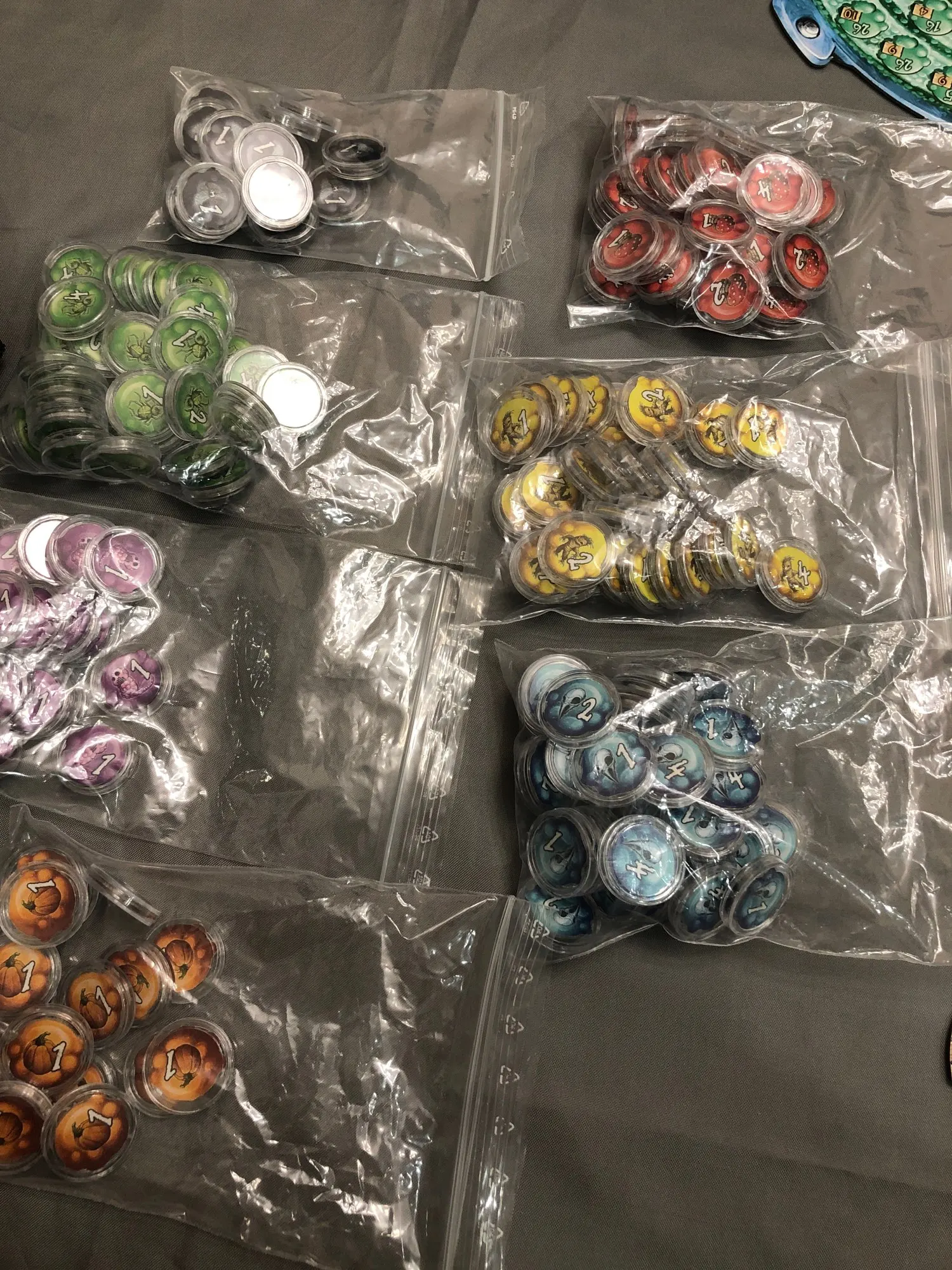 Купил их для Quacks of quedlinбург tokens. Они плотно прилегают, но это, вероятно, хорошо, так как я не планирую снова их вынимать, и если Жетоны потускнеют, они могут быть повреждены. Я бы порекомендовал их всем, кто ищет недорогой способ защитить свои жетоны