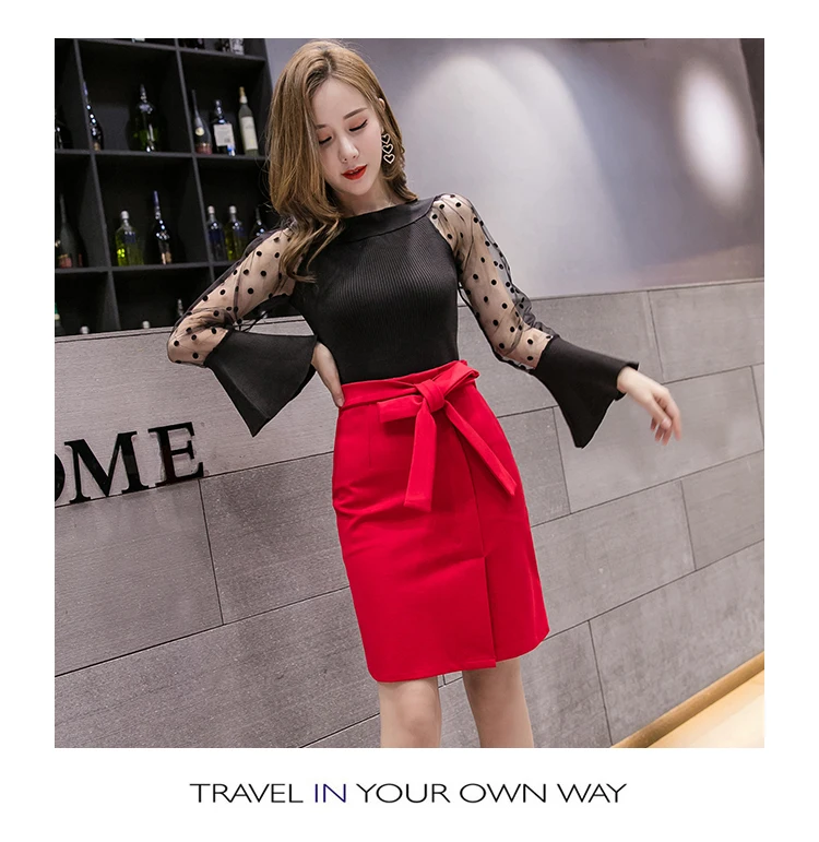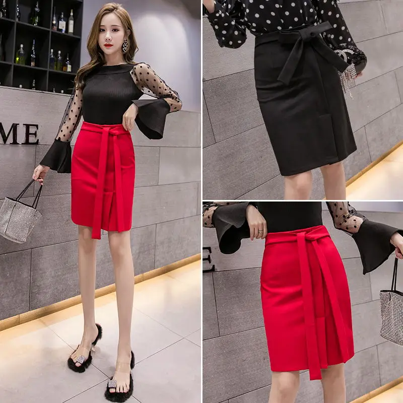 Женская юбка-карандаш с завышенной талией, красная юбка-карандаш