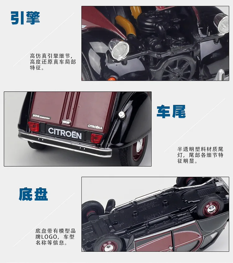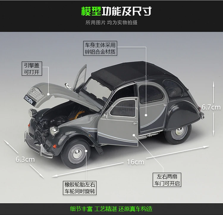 Модель автомобиля Welly из сплава для Citroen 2CV 6, 1:24, Charleston, Литые и игрушечные автомобили, коллекционные подарки, игрушка для транспортировки без дистанционного управления