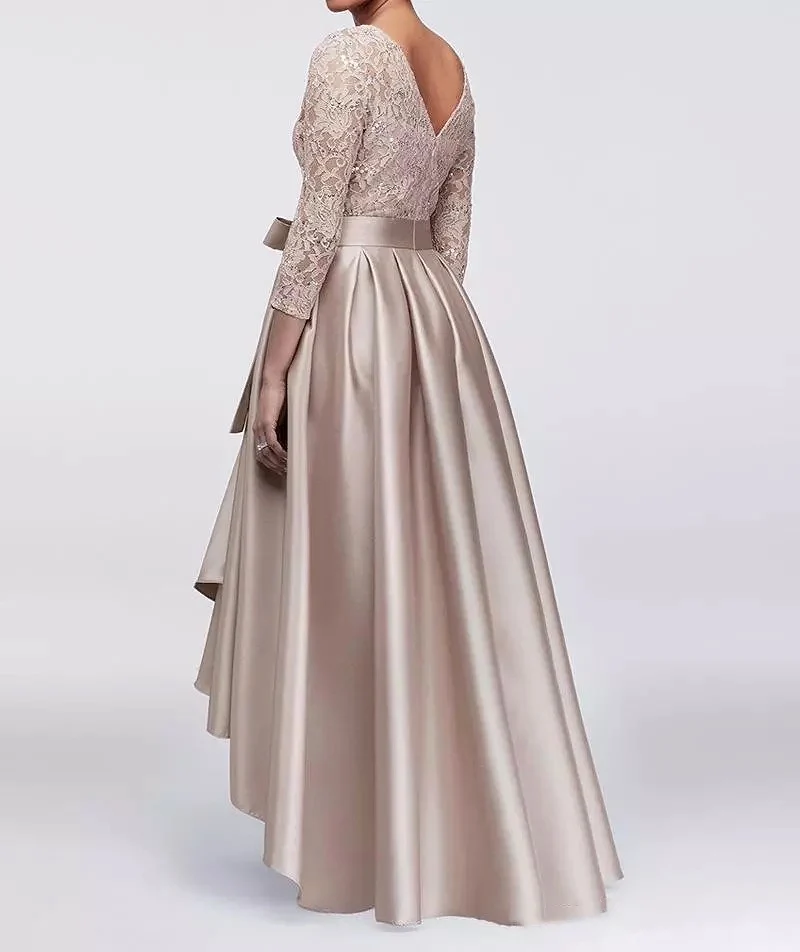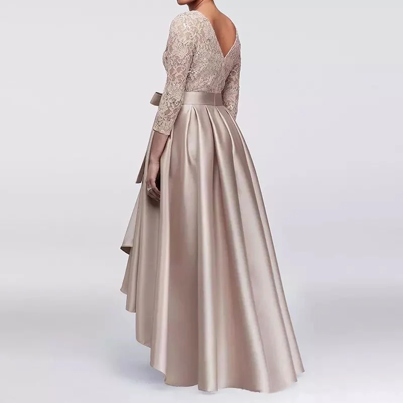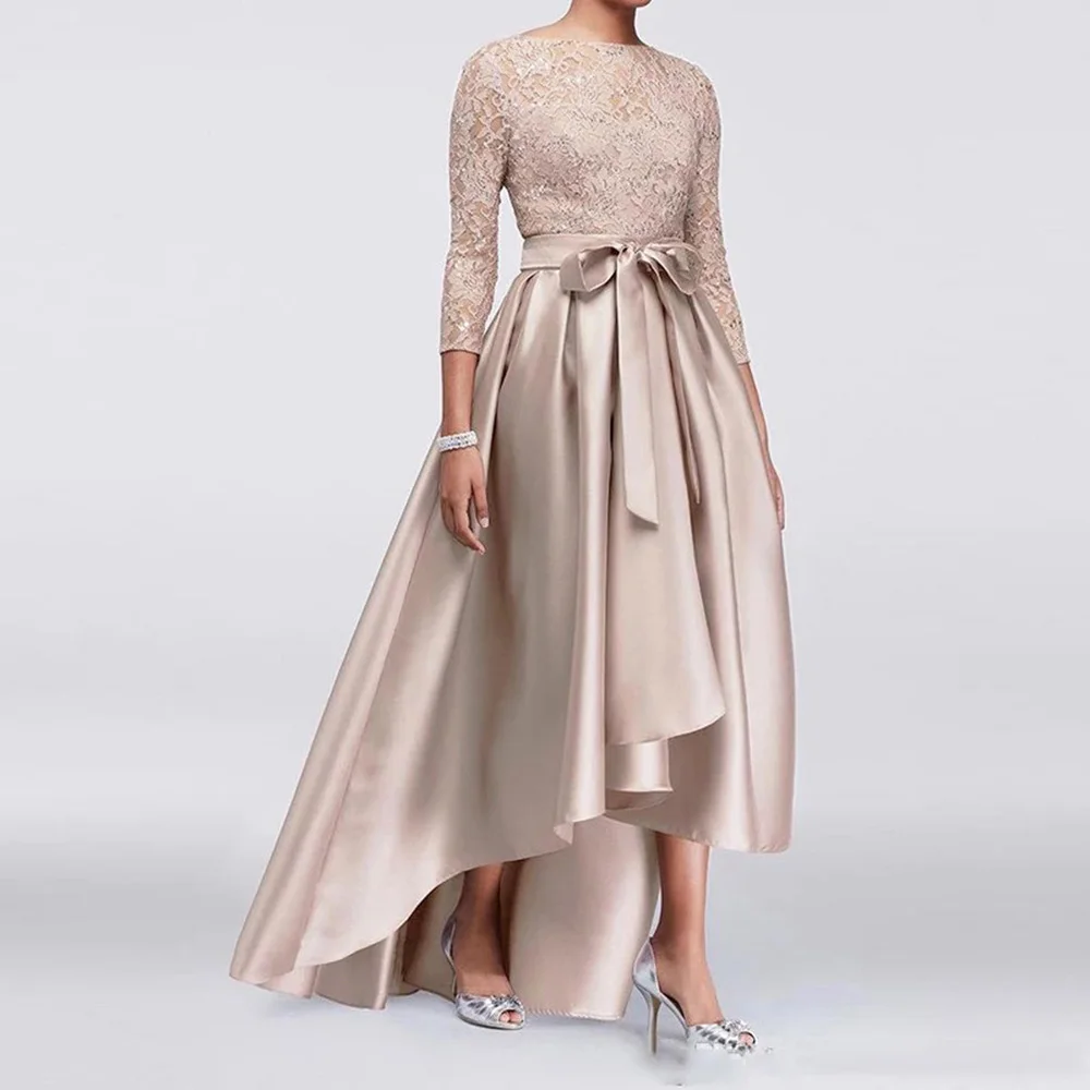 Атласные платья цвета шампанского для матери невесты, ТРАПЕЦИЕВИДНОЕ ПЛАТЬЕ С Рукавом 34, с высоким и низким кружевом и блестками, свадебные платья для гостей, платье для жениха крестной матери