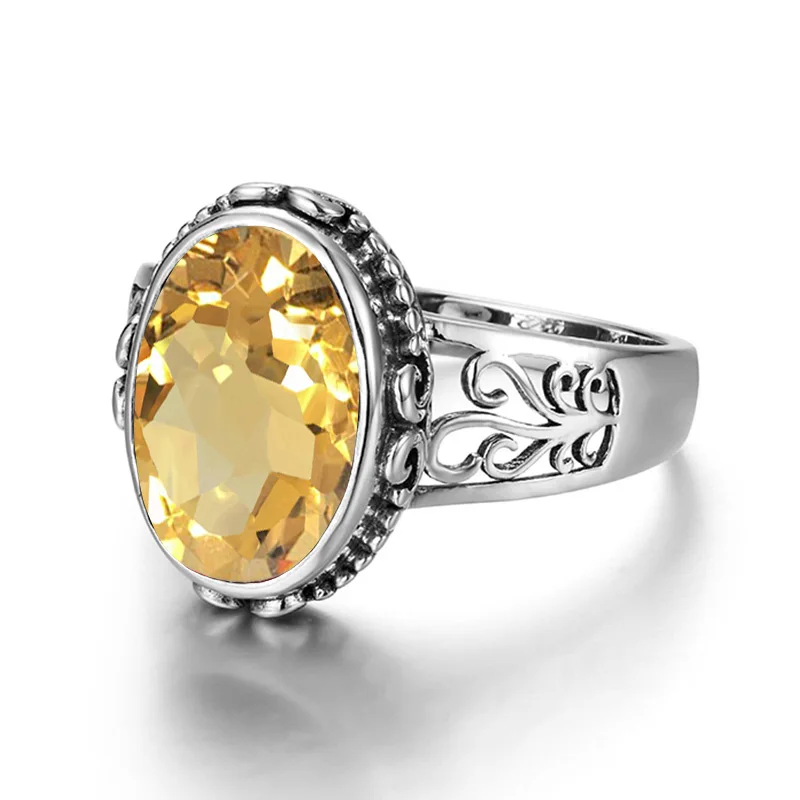 Желтый цитрин кольцо для Для женщин серебро 925 пробы мужские Кольца с полудрагоценными камнями овальной формы в богемном стиле ручной работы Женские Ювелирные наборы свадебных ювелирных изделий на продажу