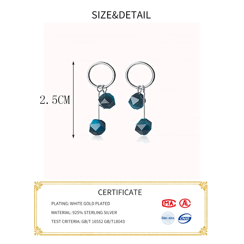 Женские серьги-гвоздики с синим камнем INZATT, ювелирные украшения для вечеринок из настоящего серебра 925 пробы