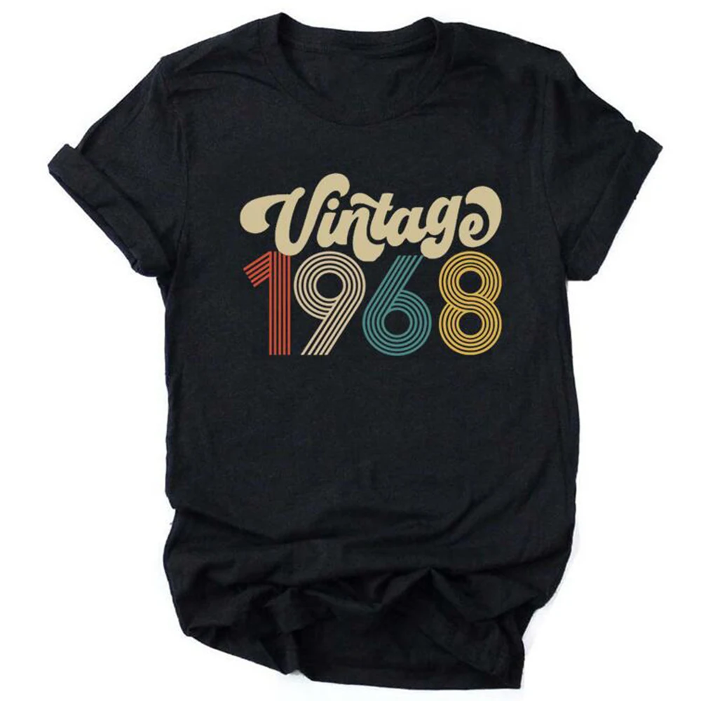 Винтажные женские футболки 1968 года, вечерние футболки с круглым вырезом и коротким рукавом на 52th день рождения, модные футболки, Прямая поставка