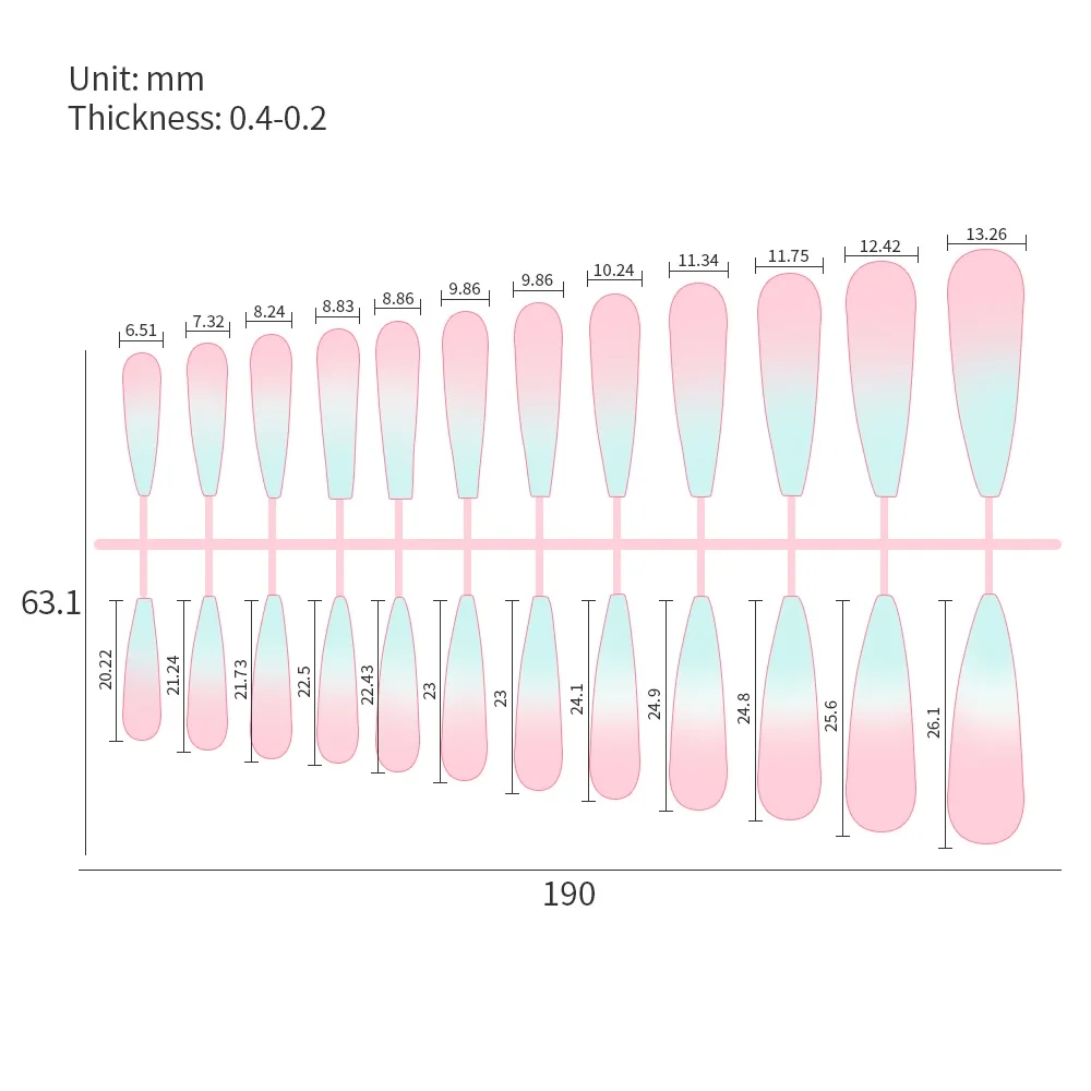 Срок службы не менее 5 дней и может быть повторно использован.24 Гвозди и 12 различных размеров, с наклейками клея, мини-файлМожно использовать для дизайна ногтей на свадьбу, вечерние или выходные дни.Подходит для большинства людей разных размеров пальцев, для профессионального салона или домашнего использования.Акриловая технология для прочного ношения