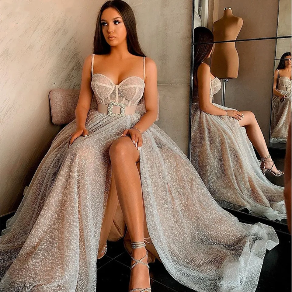 Блестящие кристаллы на тонких бретелях, платье на выпускной, роскош...