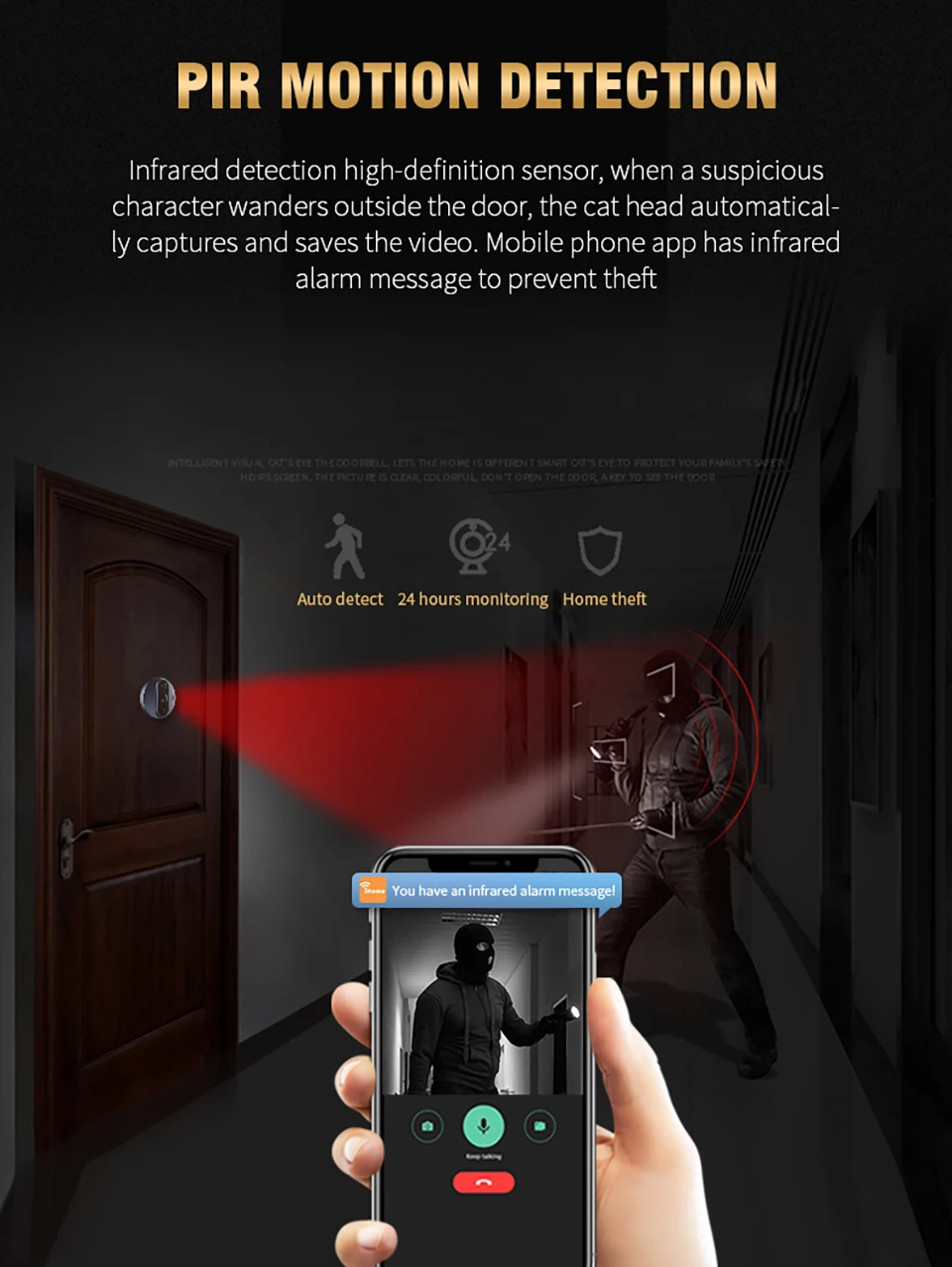 Wi-Fi цифровой дверной глазокДверной звонок с беспроводным подключением к беспроводному Wi-Fi роутеру. Подключив беспроводной маршрутизатор дома, вы можете осуществить мониторинг между портативным концом (ручной конец включает в себя смартфоны, планшеты Android) и дверной звонок двусторонней Домофон, Запись фотографий и т. Д.