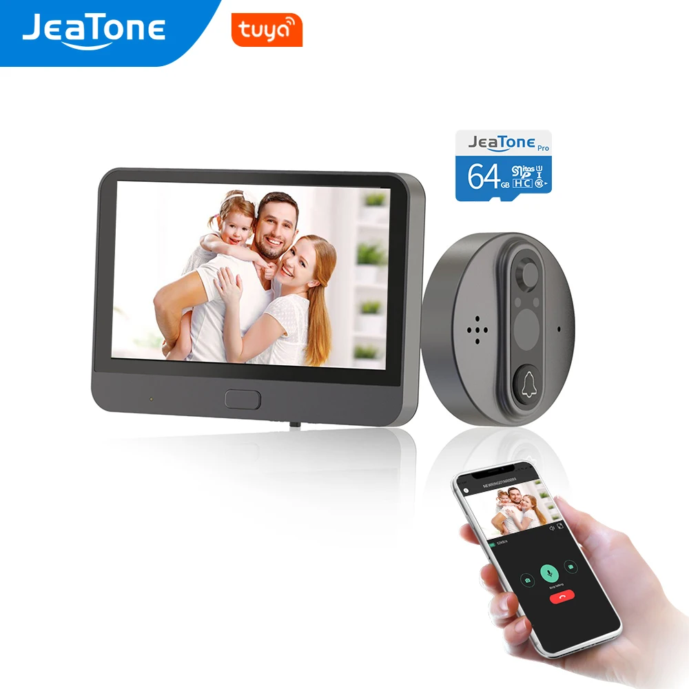 JeaTone Tuya WiFi глазок дверной звонок камера просмотра 4,3-дюймовый ЖК-монитор для умного дома с приложением обнаружения движения удаленная разблокировка