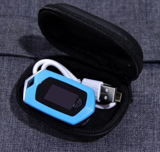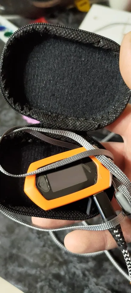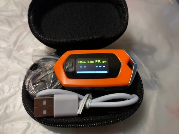 Оьправлен был быстро,доставлен в срок.Очень понравился.Маленький,красивенький,легкий.Хорошо помещается в чехол вместе со шнурком и USB.Удобно брать с собой ,и на тренировки удобно на шнурке.Смущает одно.На разных пальцах в одно время показывает разную сатурацию,вроде так не должно быть...