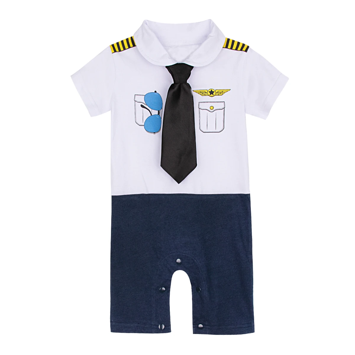 Комбинезон пилота для маленьких мальчиков, костюмы для младенцев, комбинезон для косплея, комплекты одежды для малышей с галстуком и шапочкой, костюм для новорожденных, Короткие хлопковые наряды