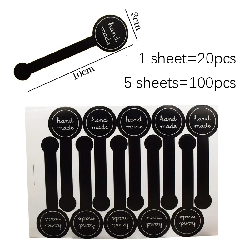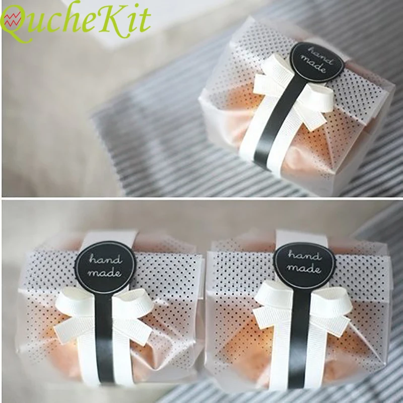 100pcs Transparent Plastic Packaging Bags +100pcs Handmade Back Stickers Wedding Party Candy Cookie Gift Bag Self Stand Holder Bags