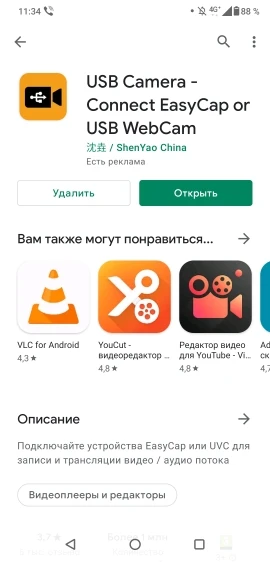 Доставили швидко. Якість знімання камери середня, але цього достатньо. Методом проби вибрав програму, в якій все працює. Купляв за 3.27 Дол.