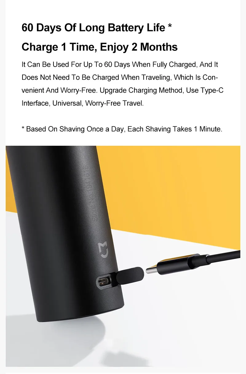 Бритва Xiaomi Mijia S300 IPX7, съемные двухслойные лезвия, зарядка ...