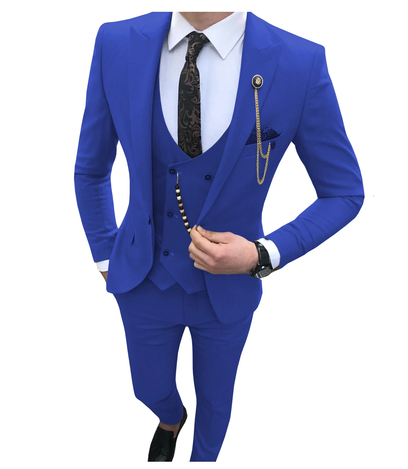 Комплект из пиджака, жилета, брюк, ярко-синего цвета, приталенный, ...