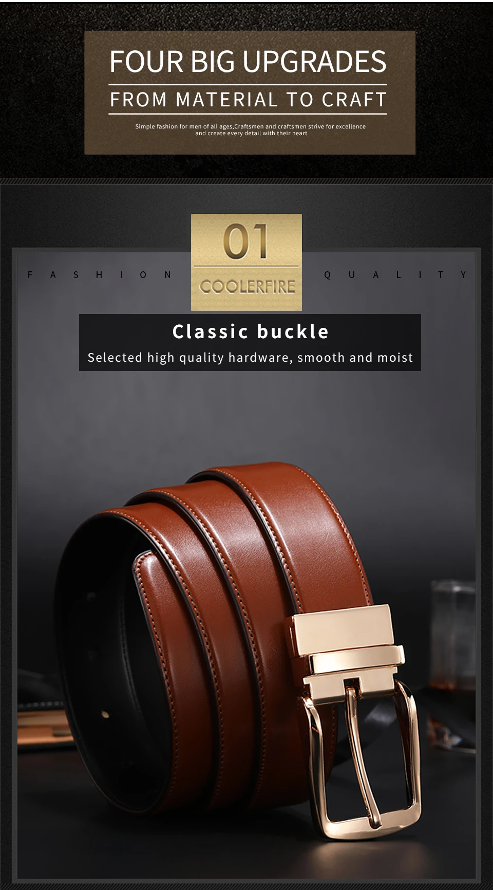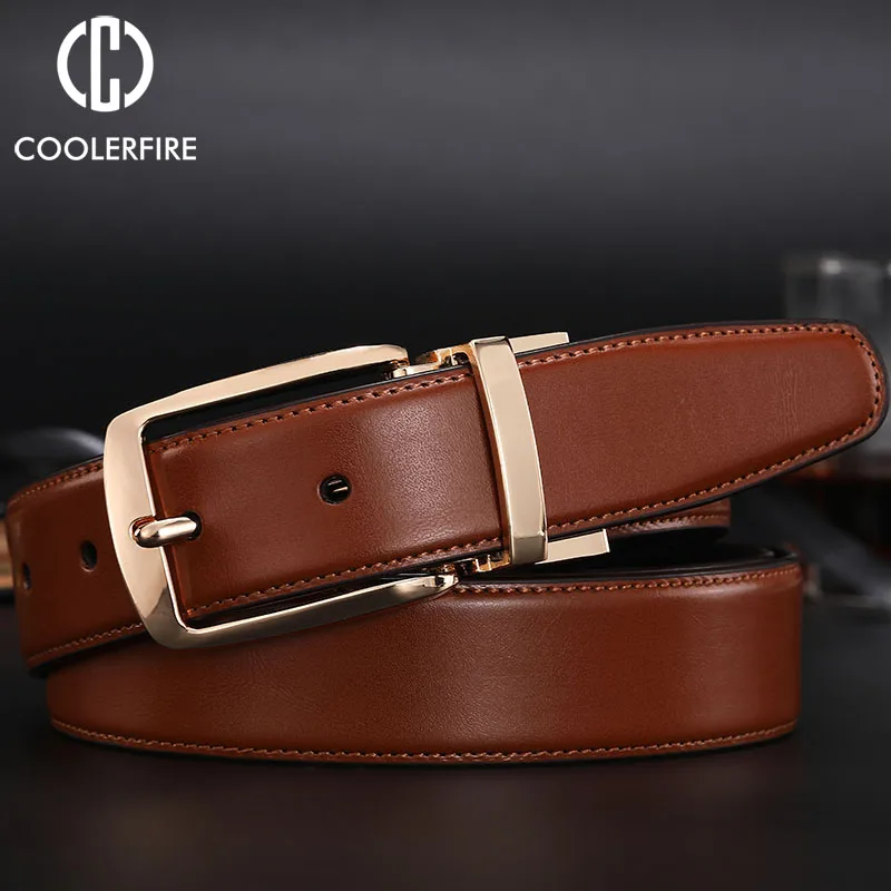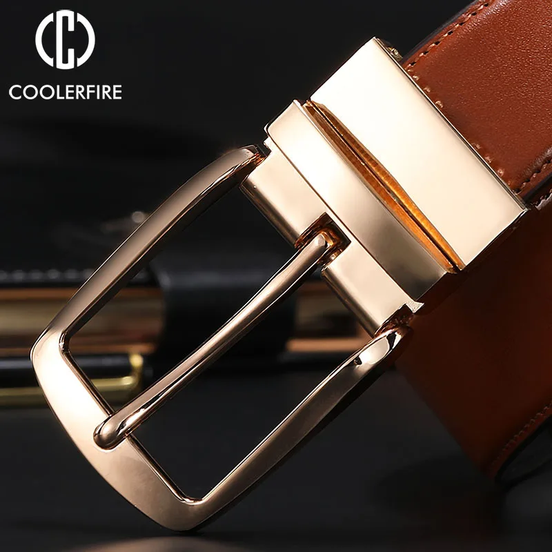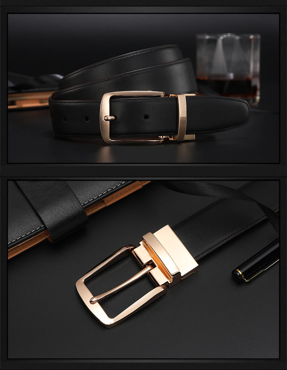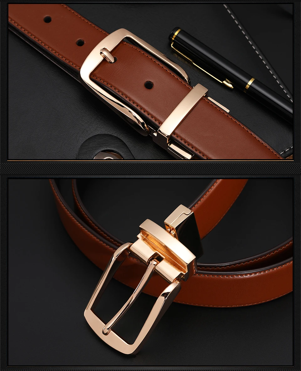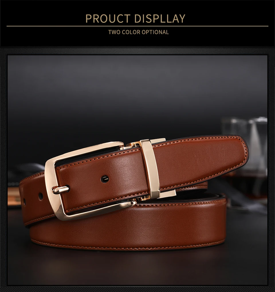 Новые двусторонние ремни для мужчин с поворотной пряжкой, подлинные кожаный ремень для платья HQ116