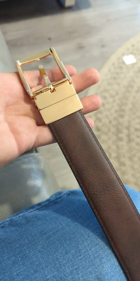 Детали ремня: пряжка ремня Стиль: Двусторонняя пряжка для ремня Размер: 5,2 см * 4,5 см Ширина ремня: 3,2 см Цвет: коричневый/черный стиль: модный, формальный, новый, Повседневный, деловой Длина ремня: 95 см, 100 см, 105 см, 110 см, 115 см, 120 см, 130 см (без размера талии) пожалуйста, выберите подходящий размер ремня, чтобы изменить его в соответствии с талией.