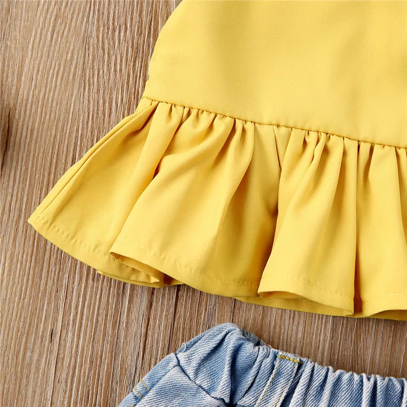 Топ джинсовый короткий, для девочек, 3 шт., летний, с оборками, От ...