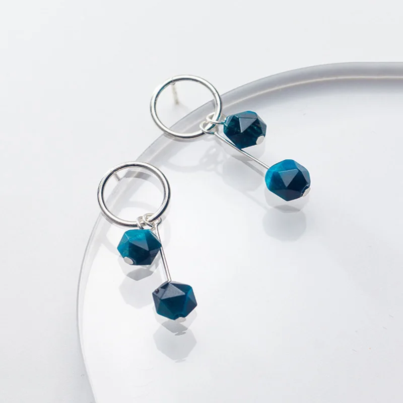 Серьги-подвески женские из 925 стерлингового серебра серебро с голубым камнем пробы, 2020