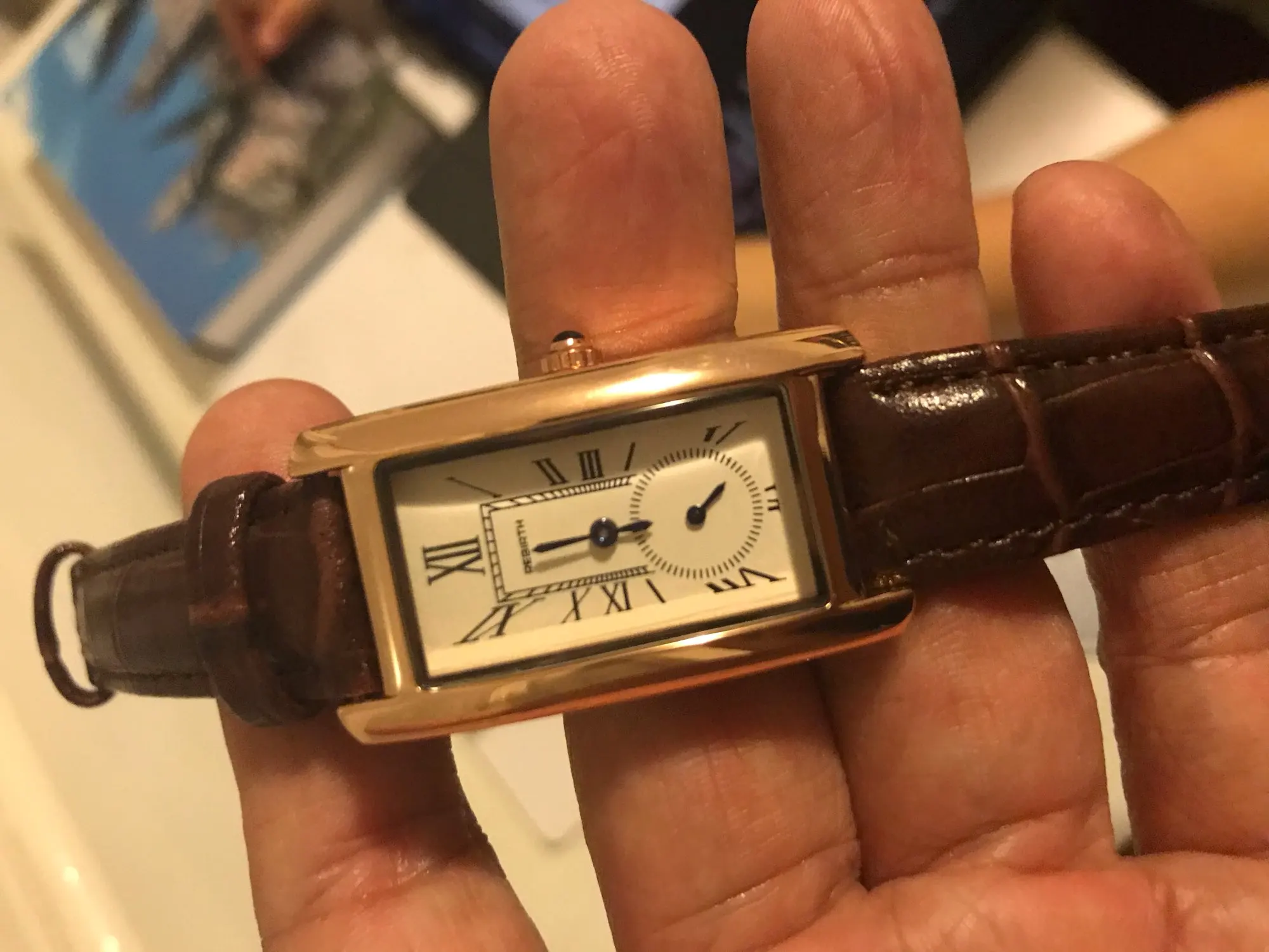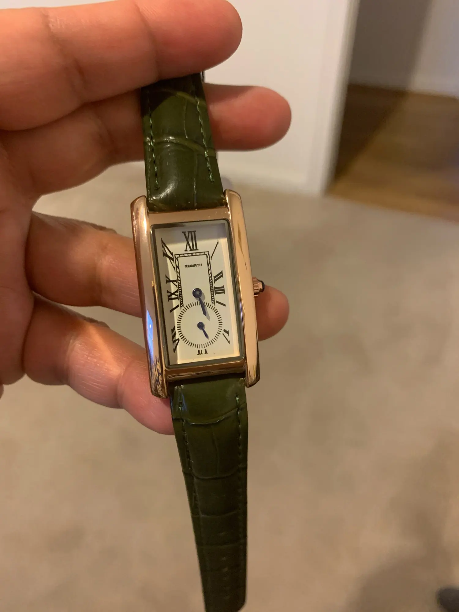 Красиво, металл больше розового золота, чем золото. У меня действительно маленькое запястье, поэтому изделие выглядит не так хорошо, но часы хорошего качества. Кожа тоже приятная на ощупь.