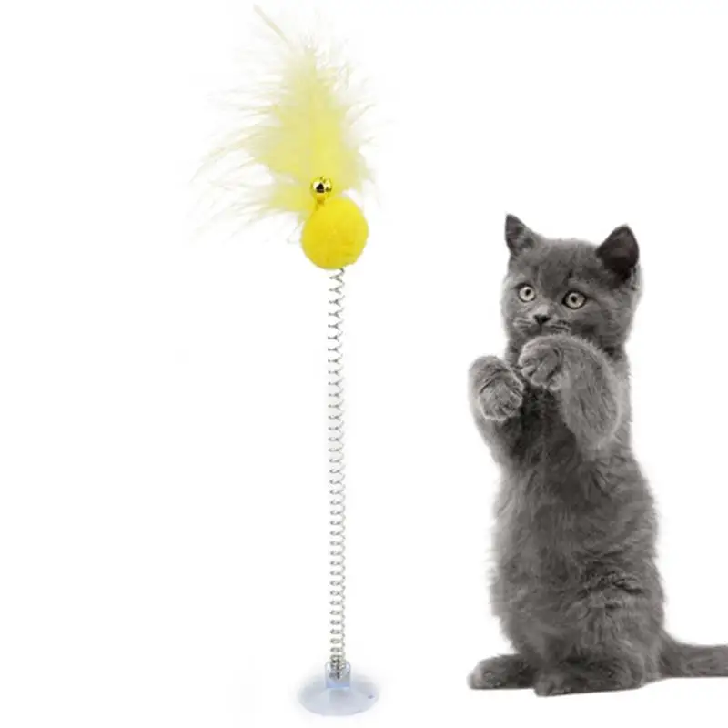 1 шт. игрушка для кошки "Дразнилка" присоска весенняя куртка из искусственной кожи перьевая кошачья игрушка для кошки "Дразнилка" палочка с колокольчиком кошка сувениры для домашних животных разные цвета