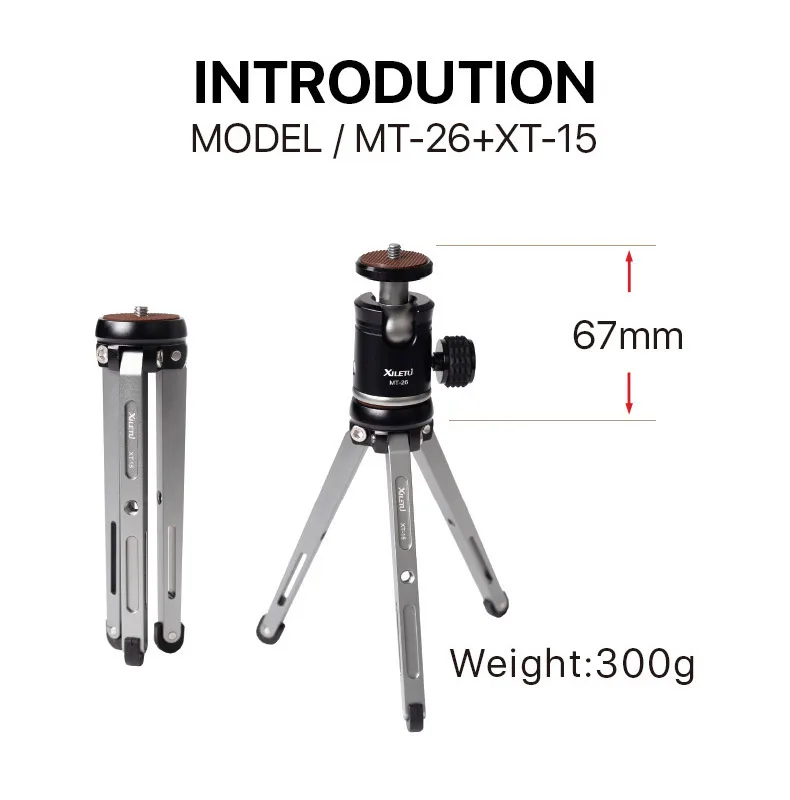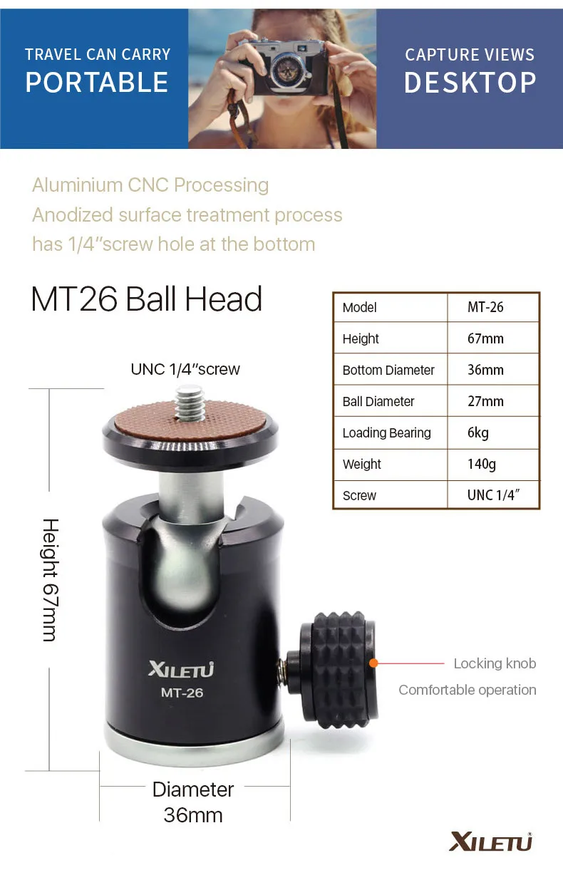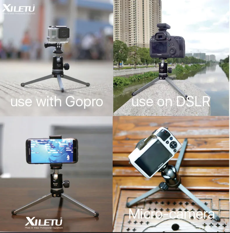 Настольная мини-тренога XILETU, металлическая, легкая, с шаровой головкой 360 градусов, для камер, DSLR, Gopros, онлайн-курс
