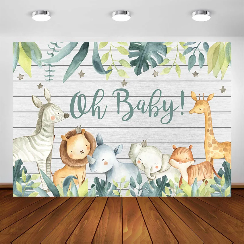 Джунгли сафари животные детский душ фон Oh Baby деревянные украшения для вечеринки фото фон торт стол Баннер праздвечерние чные атрибуты