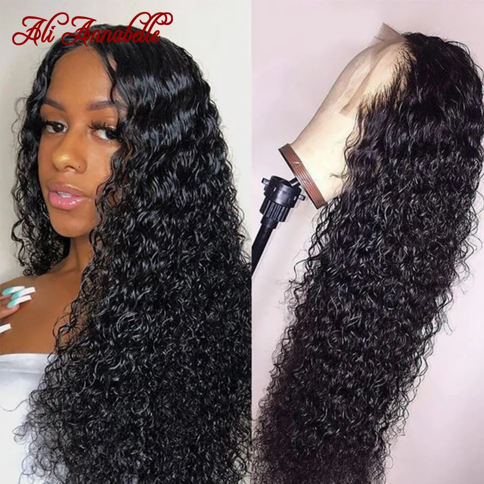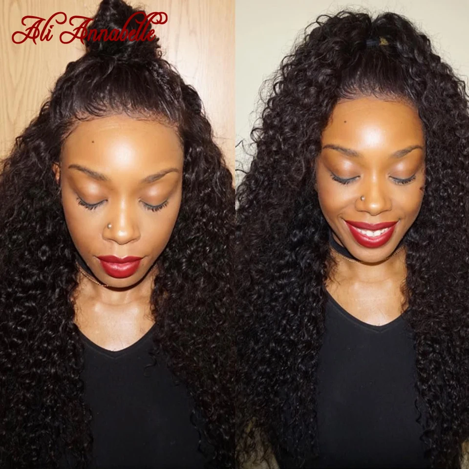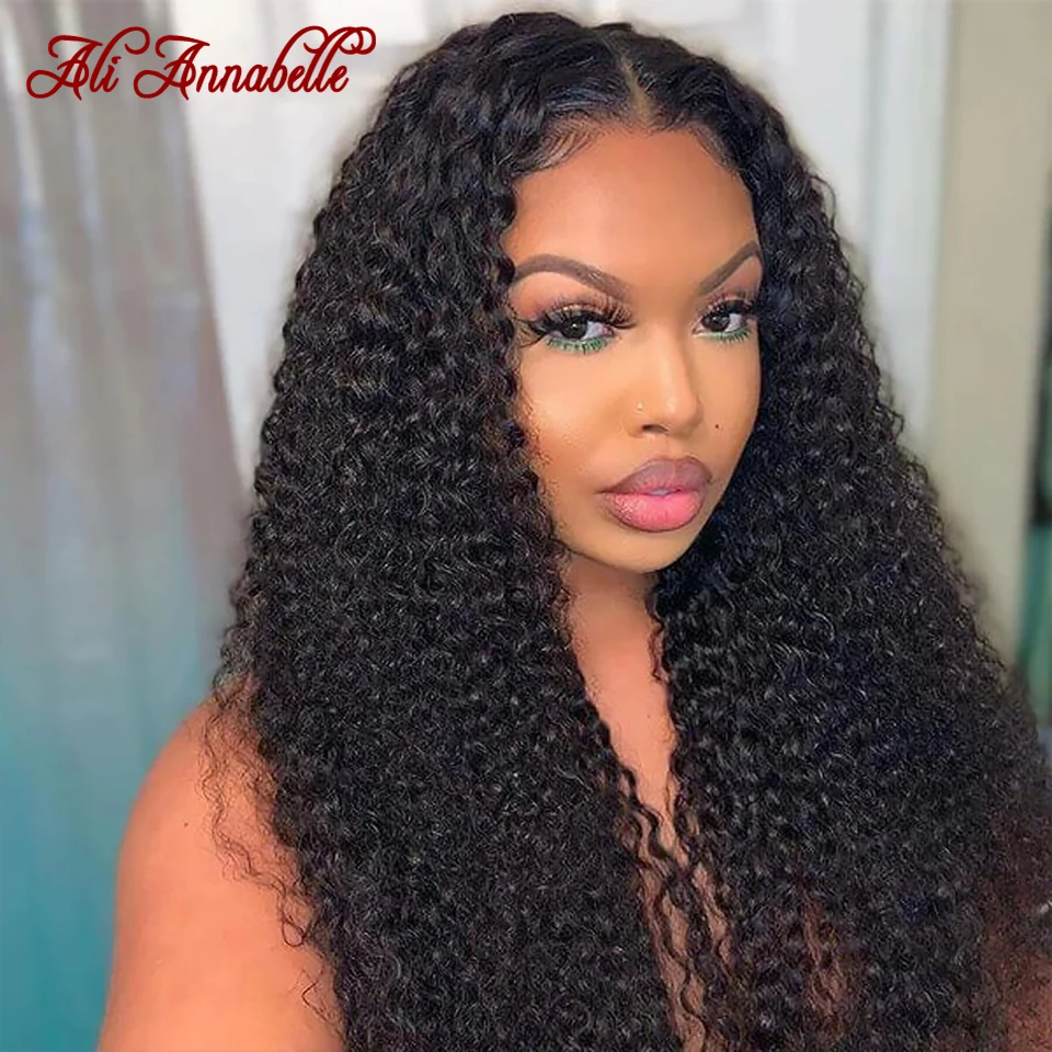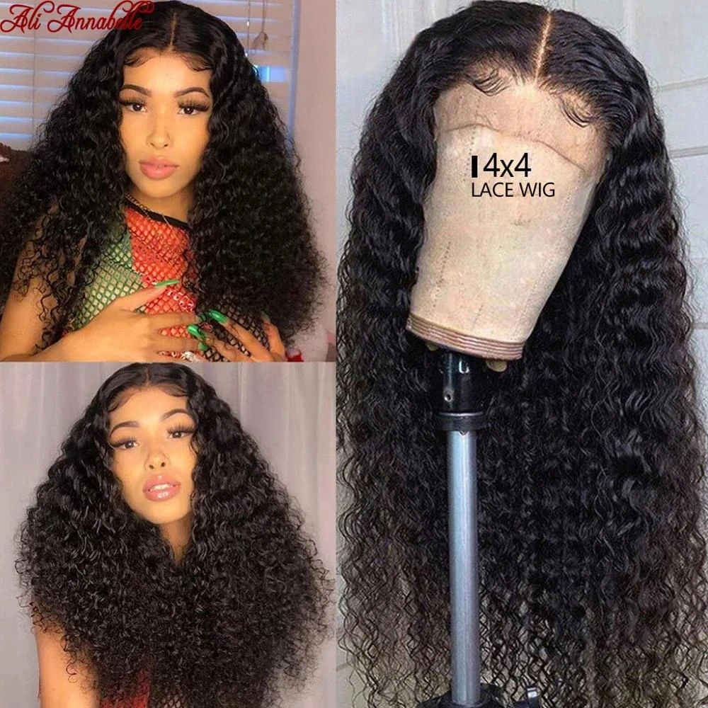 Монгольские кудрявые вьющиеся парики для женщин 4x4, парик на шнурке, кудрявые человеческие волосы, предварительно выщипанные, 150% плотность, парик ALI ANNABELLE