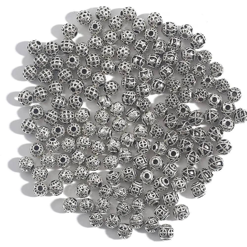 Бусины-разделители для ювелирных изделий, тибетские полые металлические, 6 мм, 20 шт.лот
