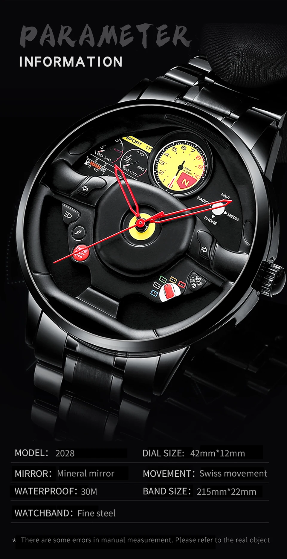Мужские водонепроницаемые часы на руль, из нержавеющей стали