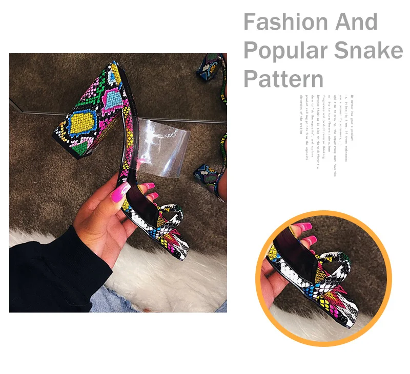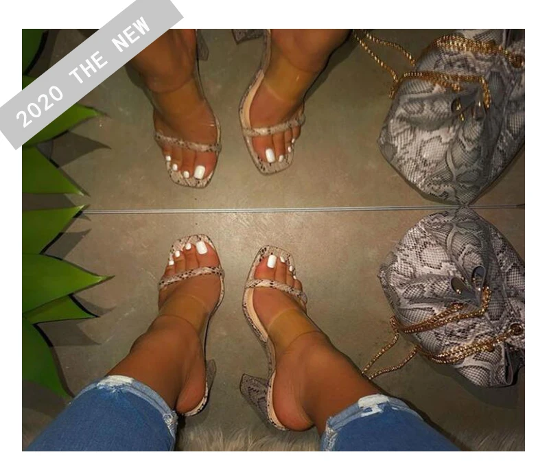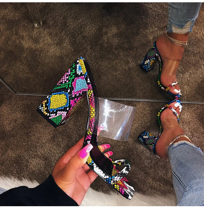Женские босоножки со змеиным узором; Женская прозрачная обувь на высоком каблуке; Женская пикантная обувь на толстом каблуке; Женская обувь; Большие размеры