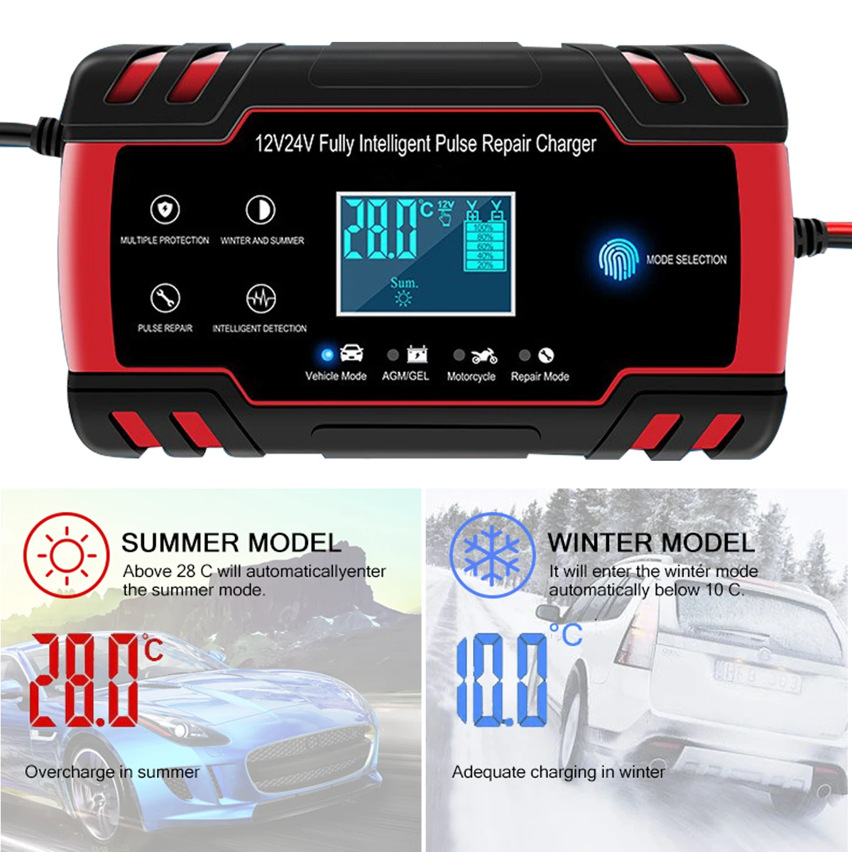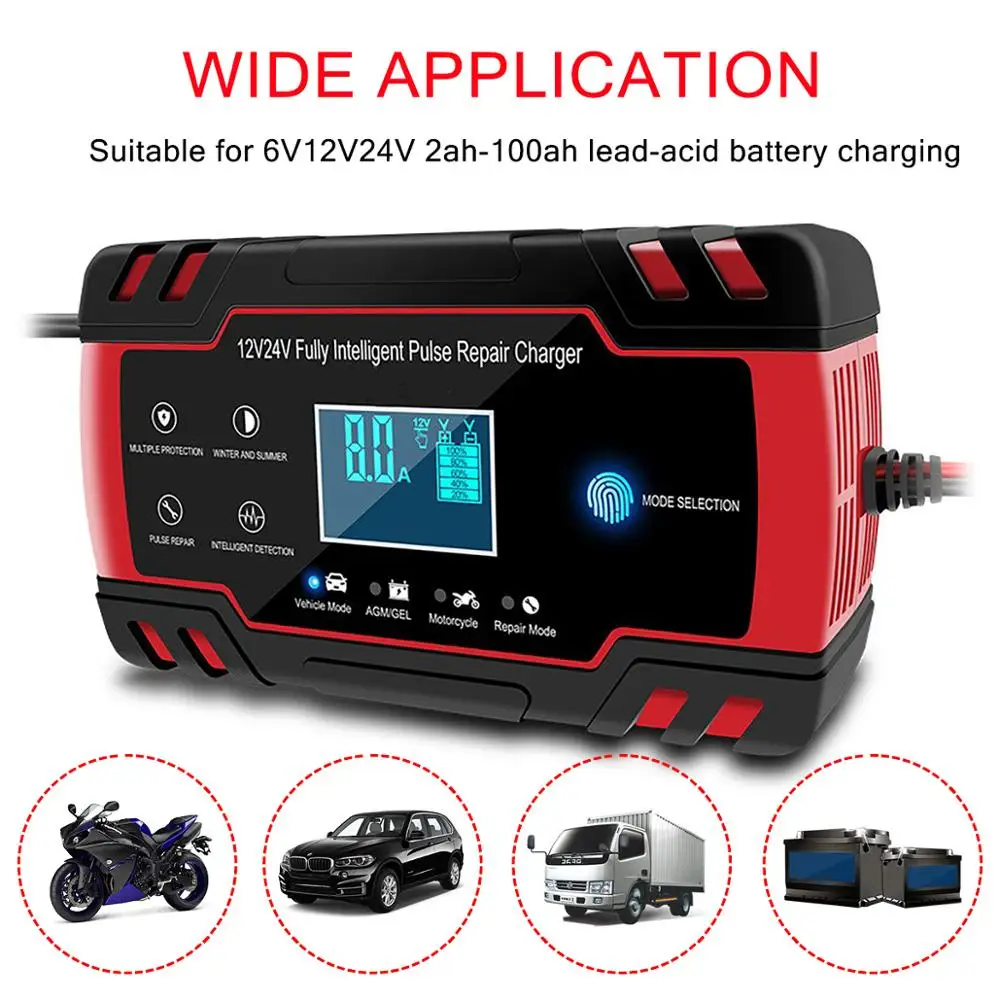 Автомобильное зарядное устройство для аккумуляторов в, 8 А, полностью автоматическое умное зарядное устройство для AGM GEL WET, свинцово-кислотная батарея с цифровым ЖК-дисплеем