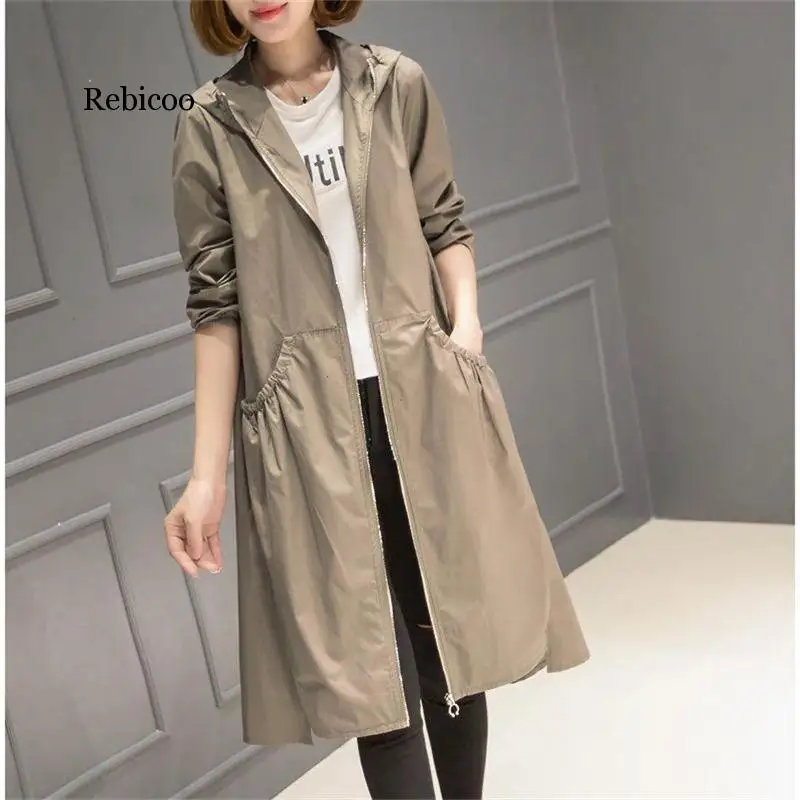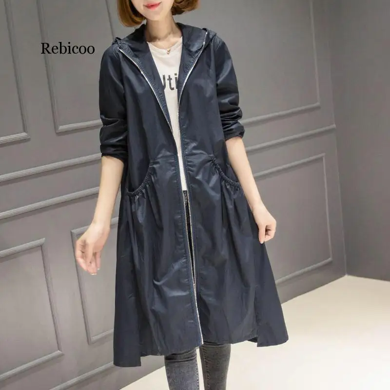 Тренч женский длинный с капюшоном, Корейская верхняя одежда, свободная тонкая ветровка размера плюс, 3XL4XL, весна-осень