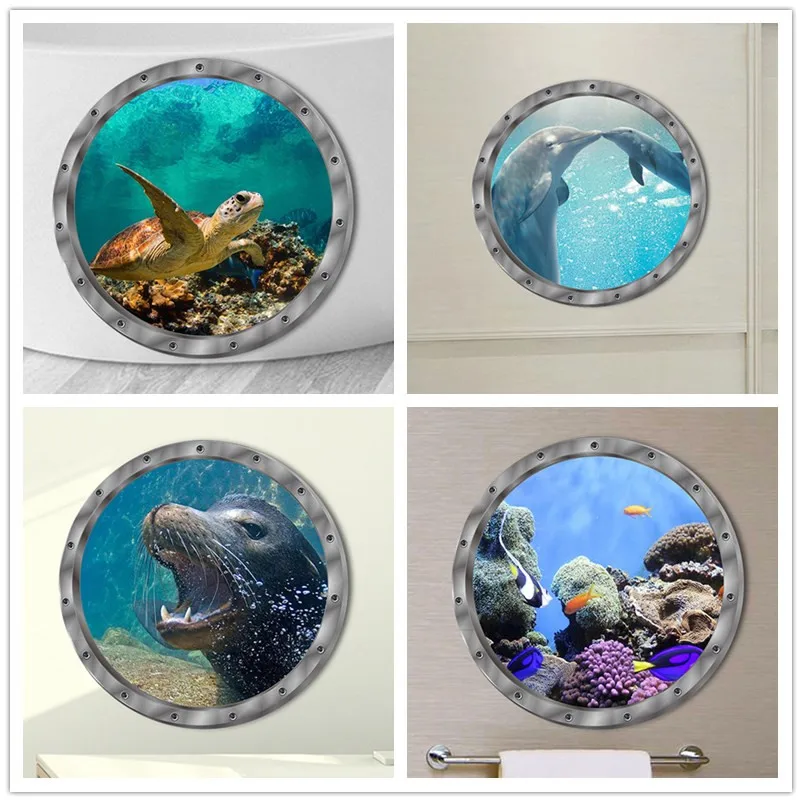 29x29 см новые настенные наклейки для подводной рыбы Водонепроницаемая наклейка в виде черепахи дельфина для стиральной машины украшение для ванной наклейки ПВХ