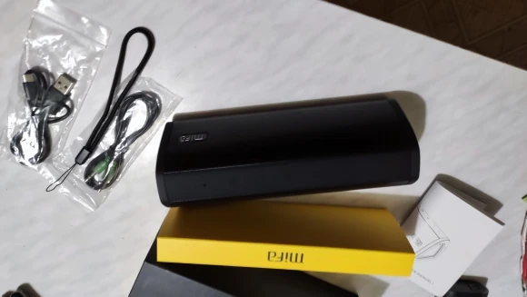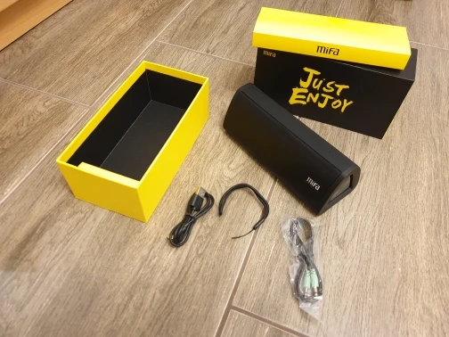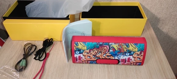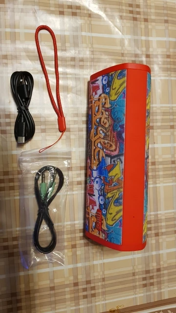 Посылка дошла очень быстро, привёз курьер. Хорошо упаковано. В полной комплектации.Коробка проклеена защитным плёнка и предотващающие вскрытие. Сама колонка так же упакована в мягкий чехол. В комплекте колонка, руководство, кабель для зарядки, кабель AUX, шнурок для переноски. С телефона сопряжения прошло быстро. Звук хороший для данной колонки, есть басы. При включении на полную, не хрипела.